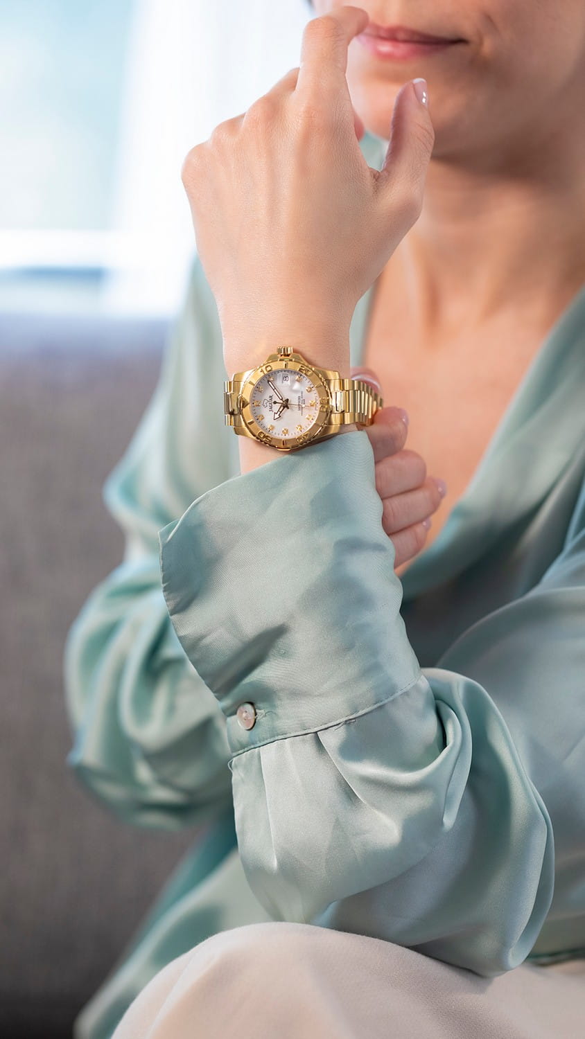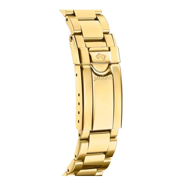 Женские швейцарские часы Jaguar Woman J895/1. Кварцевый швейцарский калибр Ronda 705. Сапфировое стеклоСапфировое стеклоПрочный и надёжный материал из кристалла сапфира синтетического происхождения, характеризующийся особой твёрдостью и устойчивостью к царапинам и повреждениям. устойчивое к мелким механическим повреждениям. Корпус и браслет часов изготовлены из нержавеющей стали с PVD-покрытиемPVDУльтратонкое покрытие наносится в технике вакуумного напыления, сочетает в себе нитрид титана особой прочности со слоем золота или оксида хрома. Несёт в себе декоративную или защитную функцию.. Стрелки с люминесцентным покрытиемЛюминесцентное покрытиеПозволяет считывать показания времени в темноте. Производители наносят на стрелки, часовые индексы, безель или поверхность циферблата светонакопительный состав, дающий холодное свечение.. Окошко даты находится в положении 3 часа. Класс водозащиты: 200 метров, позволит плавать, нырять и заниматься другими водными видами спорта. Стальной браслет с частичным PVD-покрытиемPVDУльтратонкое покрытие наносится в технике вакуумного напыления, сочетает в себе нитрид титана особой прочности со слоем золота или оксида хрома. Несёт в себе декоративную или защитную функцию. на раскладной застёжкеРаскладная застёжкаТакой тип застёжки используется только на браслетах из металла. Она никогда не раскрывается полностью, происходит разделение на 2 и более частей. Раскладывающая застёжка снизит вероятность потери часов к минимуму.. Циферблат украшен кристаллами в роли часовых индексов. БезельБезельВнешний ободок, закрепляющий стекло. В спортивных часах так называется поворотное кольцо с делениями на циферблате, выполняет роль таймера – замеряет отрезки времени на шкале. Неподвижный безель – элемент декора. Однонаправленно вращающийся безель на дайверских часах позволяет фиксировать моменты погружения и выныривания на поверхность. с PVD-покрытиемPVDУльтратонкое покрытие наносится в технике вакуумного напыления, сочетает в себе нитрид титана особой прочности со слоем золота или оксида хрома. Несёт в себе декоративную или защитную функцию. инкрустирован кристаллами.