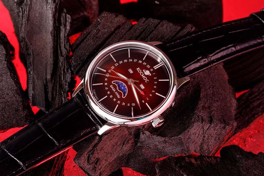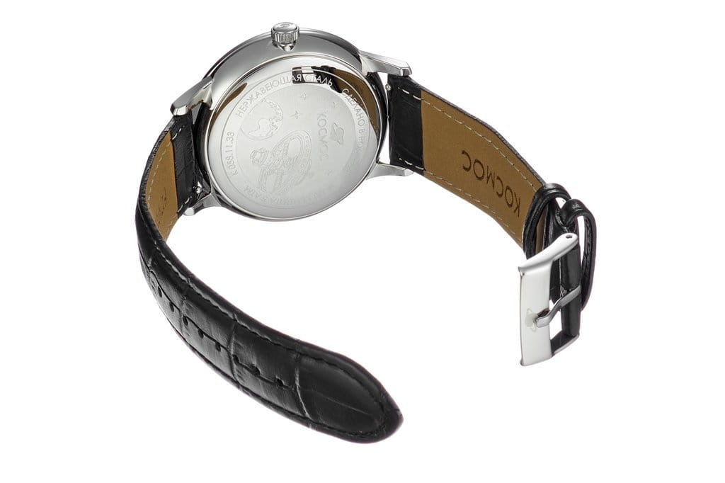 Российские кварцевые часы Космос K 067.11.35 из коллекции Сатурн оснащены механизмом калибра Miyota. Круглый корпус из стали диаметром 41 мм защищен минеральным стекломМинеральное стеклоМинеральное стекло представляет собой искусственно выращенный минерал кварца. Такое стекло отличается особой устойчивостью к повреждениям и царапинам. Уступает по некоторым качествам сапфировому стеклу. повышенной прочности. Циферблат дополнен функциями отображения даты центральной стрелкой, дня недели, месяца и фаз Луны. Стрелки с люминесцентным покрытиемЛюминесцентное покрытиеПозволяет считывать показания времени в темноте. Производители наносят на стрелки, часовые индексы, безель или поверхность циферблата светонакопительный состав, дающий холодное свечение. обеспечивают хорошую видимость в темное время суток. Часы имеют водонепроницаемость 50 метров, позволит защитить корпус от случайных брызг или капель дождя. Модель комплектуется кожаным ремешком на стандартной застежке. Практичный и стильный дизайн делает эти часы идеальным выбором для современного ритма жизни, сочетая в себе функциональность и элегантность.
