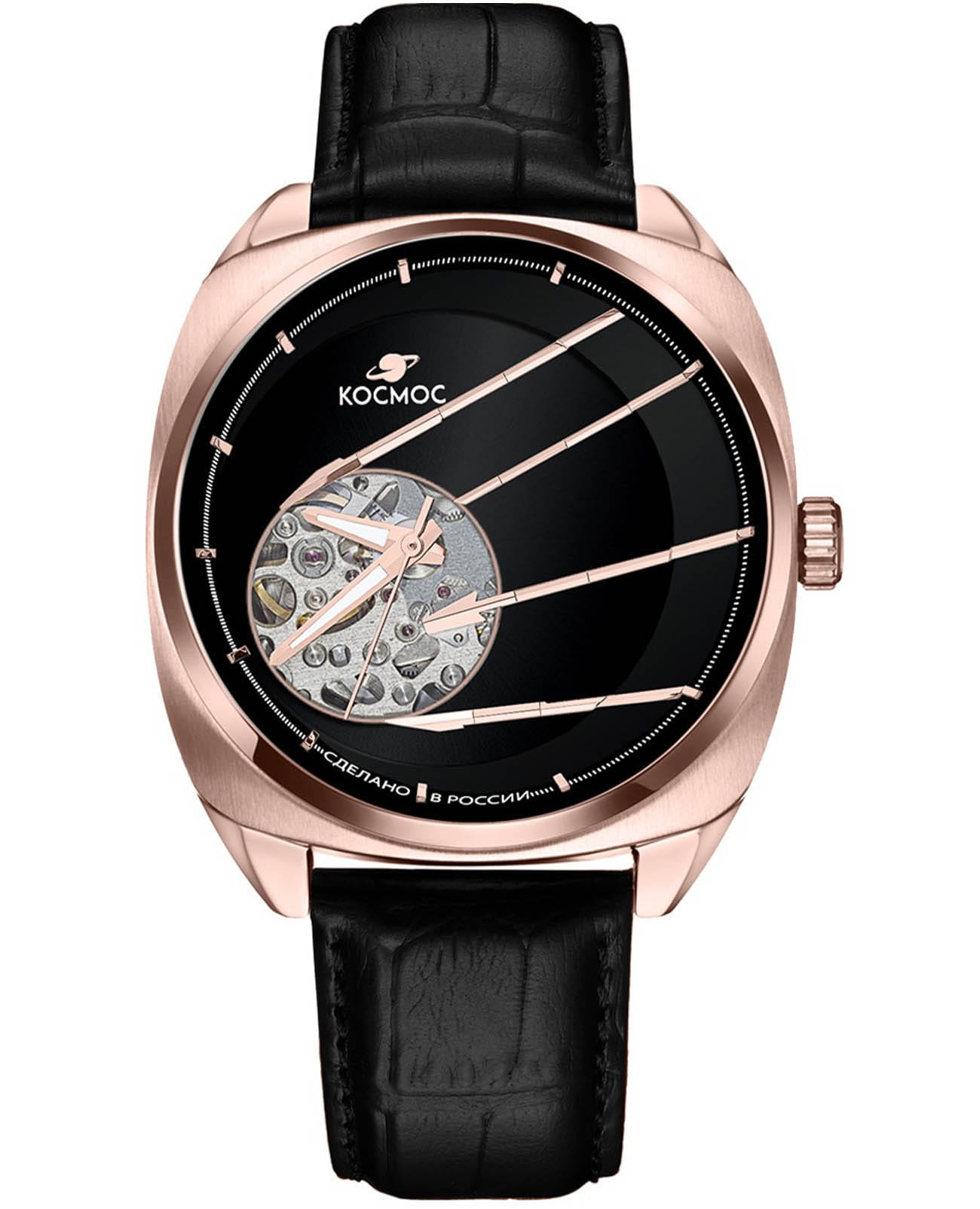 Мужские наручные часы Космос Спутник K 115.41.31 — это уникальная лимитированная серия, созданная в честь исторического запуска первого искусственного спутника Земли. В корпусе необычной круглой формы, выполненном из гипоаллергенной нержавеющей стали с PVDPVDУльтратонкое покрытие наносится в технике вакуумного напыления, сочетает в себе нитрид титана особой прочности со слоем золота или оксида хрома. Несёт в себе декоративную или защитную функцию. покрытием, работает надежный механический механизм с автоподзаводом от японской компании Seiko. Прозрачная задняя крышка, закрепленная на четырех винтах, открывает вид на сложный механизм, а на самой крышке указан индивидуальный номер модели в формате хх/50. Скелетонизированный черный циферблат защищен сапфировым стекломСапфировое стеклоПрочный и надёжный материал из кристалла сапфира синтетического происхождения, характеризующийся особой твёрдостью и устойчивостью к царапинам и повреждениям. с антибликовым покрытиемАнтибликовое покрытиеСлой оксида металла в 0,13-0,3 микрон, благодаря которому стекло часов не бликует и не отражает свет. Антибликовое покрытие уменьшает отражение света в 10 раз, обеспечивая отличную читаемость показателей циферблата., которое обеспечивает максимальную устойчивость к царапинам и идеальную видимость в любых условиях. Украшением циферблата служат крупные стрелки с люминесцентным покрытиемЛюминесцентное покрытиеПозволяет считывать показания времени в темноте. Производители наносят на стрелки, часовые индексы, безель или поверхность циферблата светонакопительный состав, дающий холодное свечение., а также специальная апертура, окаймленная элементами, напоминающими антенны Спутника. Часовая и минутная стрелки отлично читаются благодаря своему размеру и светящемуся покрытию. Браслет из натуральной кожи черного цвета дополнен удобной застежкой-бабочкой с двумя боковыми кнопкамиЗастёжка "бабочка"Такой вид застёжки дополняется предохранителями, помогающими избежать случайного раскрытия браслета. Обладают изящным исполнением. , что гарантирует надежную фиксацию на руке. Водозащита до 10 атм (WR100) позволяет использовать часы при плавании и других водных видах спорта без акваланга. Коллекция Спутник — это выбор для ценителей истории космических достижений и современных технологий.