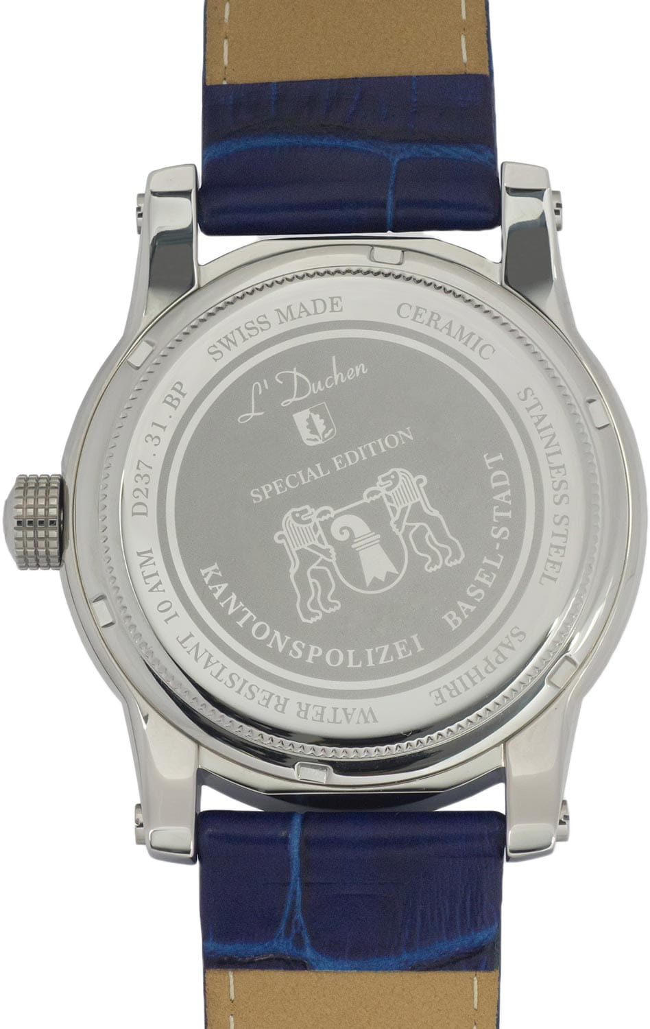 Мужские швейцарские часы L'Duchen Aerostat D237.31.BP, кварцевый механизм с высокой точностью. Сапфировое стеклоСапфировое стеклоПрочный и надёжный материал из кристалла сапфира синтетического происхождения, характеризующийся особой твёрдостью и устойчивостью к царапинам и повреждениям. устойчивое к появлению царапин, обладающее высокой прозрачностью. Корпус часов выполнен из нержавеющей стали. БезельБезельВнешний ободок, закрепляющий стекло. В спортивных часах так называется поворотное кольцо с делениями на циферблате, выполняет роль таймера – замеряет отрезки времени на шкале. Неподвижный безель – элемент декора. Однонаправленно вращающийся безель на дайверских часах позволяет фиксировать моменты погружения и выныривания на поверхность. из керамики. Стрелки с люминесцентным покрытиемЛюминесцентное покрытиеПозволяет считывать показания времени в темноте. Производители наносят на стрелки, часовые индексы, безель или поверхность циферблата светонакопительный состав, дающий холодное свечение.. Класс водозащиты: 100 метров, позволит плавать, нырять и заниматься другими водными видами спорта. Кожаный ремешок на застёжке «бабочка» с кнопкамиЗастёжка "бабочка"Такой вид застёжки дополняется предохранителями, помогающими избежать случайного раскрытия браслета. Обладают изящным исполнением. .