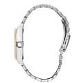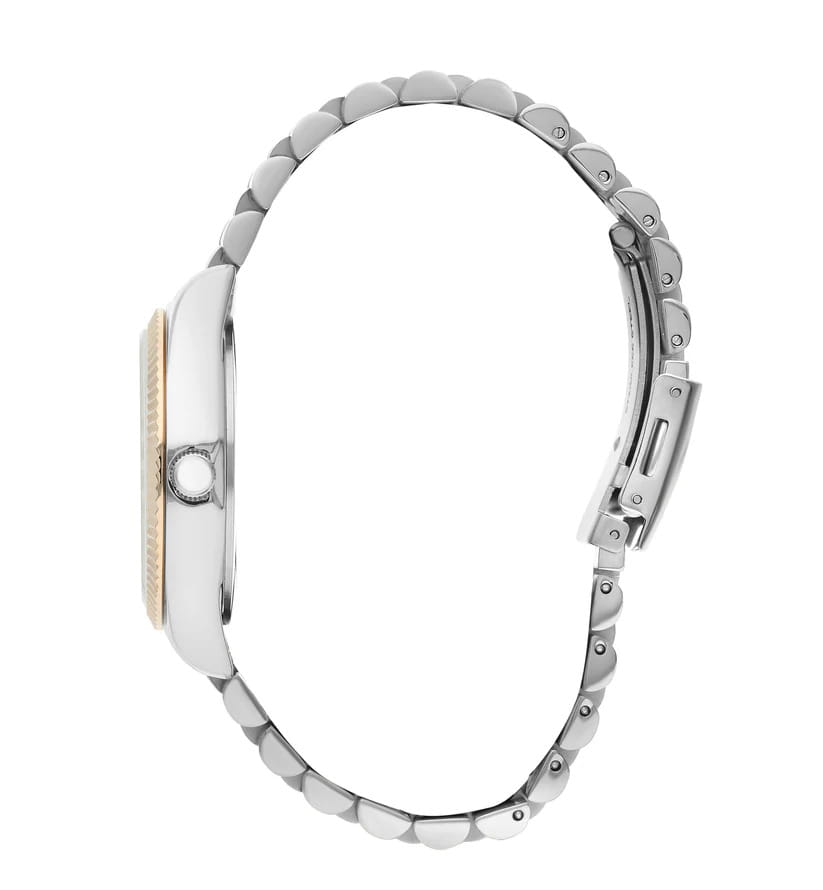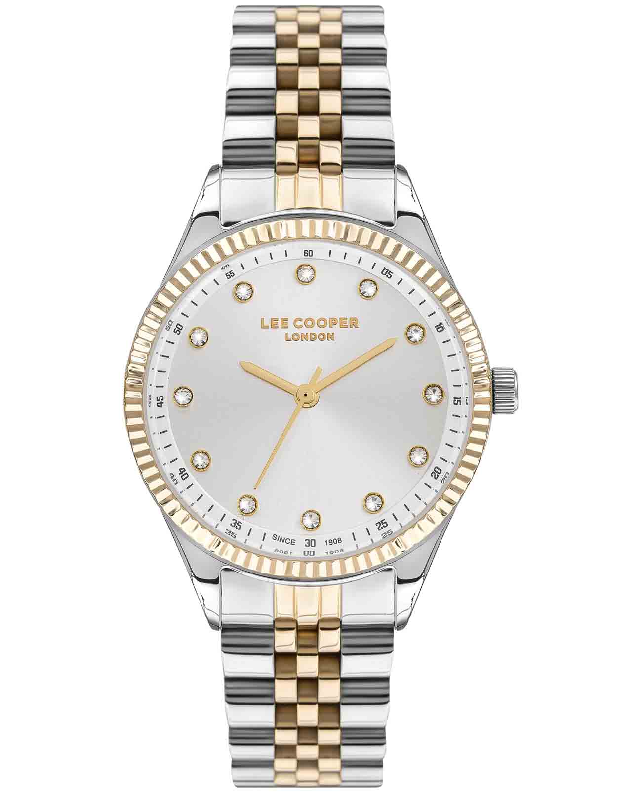 Женские наручные часы Lee Cooper LC07310.230 — это элегантная модель с утончённым дизайном. Корпус диаметром 35 мм выполнен из суперметалла, что придаёт часам изысканный вид. Серебристый циферблат украшен изящными вставками из циркония и стрелками, обеспечивая удобное считывание времени. Циферблат защищён минеральным стекломМинеральное стеклоМинеральное стекло представляет собой искусственно выращенный минерал кварца. Такое стекло отличается особой устойчивостью к повреждениям и царапинам. Уступает по некоторым качествам сапфировому стеклу., устойчивым к царапинам. Часы работают на кварцевом механизме, обеспечивая точность хода. Браслет из нержавеющей стали с раскладной застёжкойРаскладная застёжкаТакой тип застёжки используется только на браслетах из металла. Она никогда не раскрывается полностью, происходит разделение на 2 и более частей. Раскладывающая застёжка снизит вероятность потери часов к минимуму. гарантирует комфортное ношение и надёжную фиксацию на запястье. БезельБезельВнешний ободок, закрепляющий стекло. В спортивных часах так называется поворотное кольцо с делениями на циферблате, выполняет роль таймера – замеряет отрезки времени на шкале. Неподвижный безель – элемент декора. Однонаправленно вращающийся безель на дайверских часах позволяет фиксировать моменты погружения и выныривания на поверхность. с IP-покрытиемIP-покрытиеМетод ионного напыления. Демонстрирует повышенную устойчивость к истиранию, окислению и химическим веществам. Под воздействием высокого давления и температуры около 1500°C молекулы металла надёжно соединяются с частицами корпуса часов.. Водозащита 30 метров защищает часы от случайных брызг и дождя, делая их подходящими для повседневного использования.