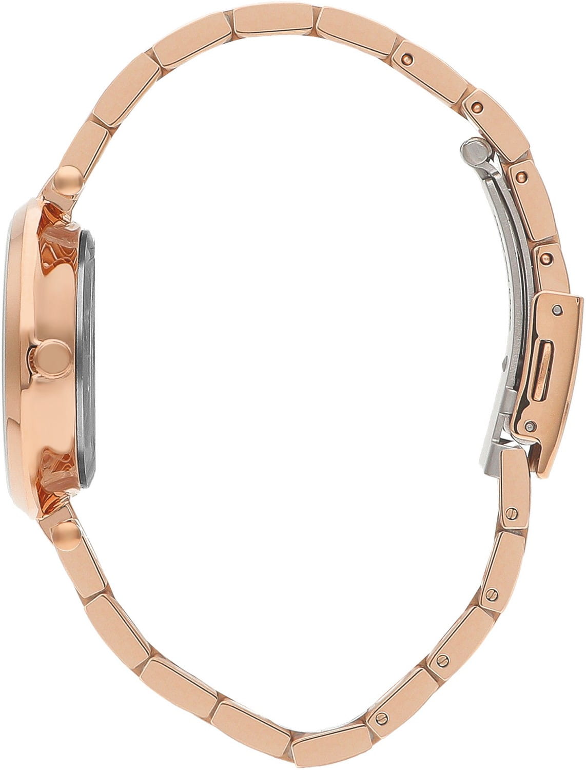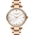 Женские часы Lee Cooper LC07591.430 — это стильное сочетание элегантности и современного дизайна. Круглый корпус диаметром 33 мм выполнен из суперметалла с IP-покрытиемIP-покрытиеМетод ионного напыления. Демонстрирует повышенную устойчивость к истиранию, окислению и химическим веществам. Под воздействием высокого давления и температуры около 1500°C молекулы металла надёжно соединяются с частицами корпуса часов. цвета розового золота. Серебристый циферблат инкрустирован цирконами, что придает модели особый блеск и защищен минеральным стекломМинеральное стеклоМинеральное стекло представляет собой искусственно выращенный минерал кварца. Такое стекло отличается особой устойчивостью к повреждениям и царапинам. Уступает по некоторым качествам сапфировому стеклу., обеспечивающим устойчивость к царапинам. Центральные часовая, минутная и секундная стрелки. Часы оснащены надежным кварцевым механизмом, источник питания - батарейка. Металлический браслет с IP-покрытиемIP-покрытиеМетод ионного напыления. Демонстрирует повышенную устойчивость к истиранию, окислению и химическим веществам. Под воздействием высокого давления и температуры около 1500°C молекулы металла надёжно соединяются с частицами корпуса часов. на раскладной застёжкеРаскладная застёжкаТакой тип застёжки используется только на браслетах из металла. Она никогда не раскрывается полностью, происходит разделение на 2 и более частей. Раскладывающая застёжка снизит вероятность потери часов к минимуму. гарантирует комфортную посадку на запястье. Водозащита 30 метров защищает модель от случайных брызг и дождя. Lee Cooper — отличный выбор для тех, кто ценит утонченность и качество.