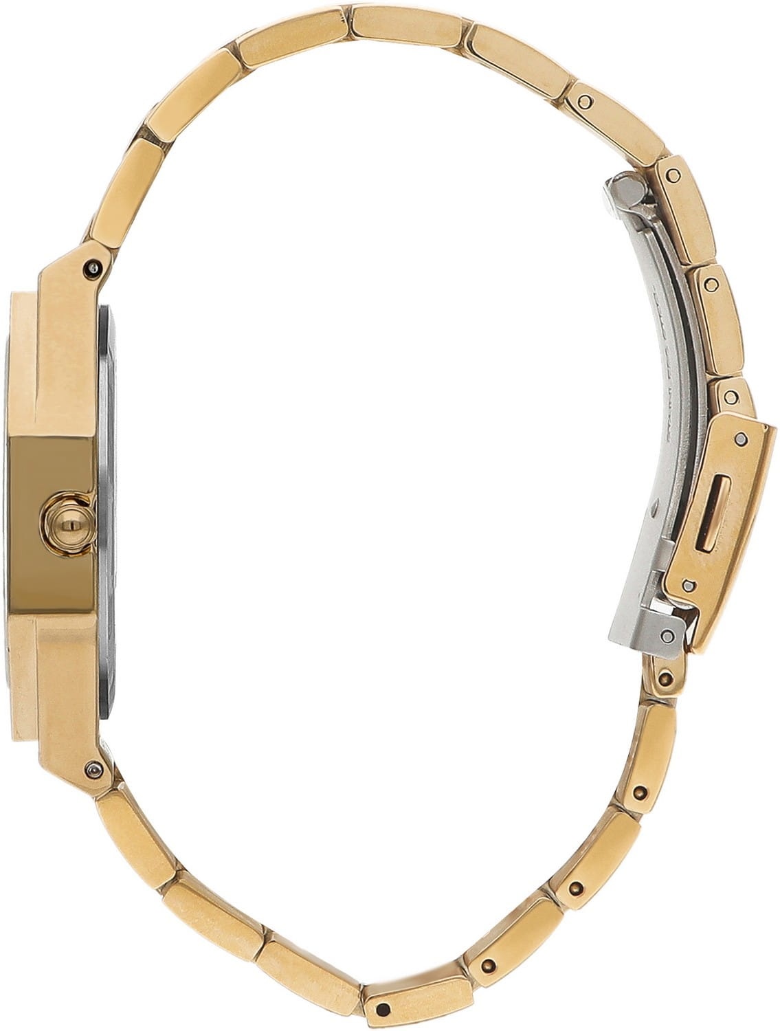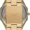 Женские часы Lee Cooper LC07599.110 — это стильное сочетание элегантности и современного дизайна. Круглый корпус диаметром 35 мм выполнен из суперметалла с IP-покрытиемIP-покрытиеМетод ионного напыления. Демонстрирует повышенную устойчивость к истиранию, окислению и химическим веществам. Под воздействием высокого давления и температуры около 1500°C молекулы металла надёжно соединяются с частицами корпуса часов. золотистого цвета. Циферблат защищен минеральным стекломМинеральное стеклоМинеральное стекло представляет собой искусственно выращенный минерал кварца. Такое стекло отличается особой устойчивостью к повреждениям и царапинам. Уступает по некоторым качествам сапфировому стеклу., обеспечивающий устойчивость к царапинам. Неподвижный безельБезельВнешний ободок, закрепляющий стекло. В спортивных часах так называется поворотное кольцо с делениями на циферблате, выполняет роль таймера – замеряет отрезки времени на шкале. Неподвижный безель – элемент декора. Однонаправленно вращающийся безель на дайверских часах позволяет фиксировать моменты погружения и выныривания на поверхность. и циферблат инкрустированы цирконами. Центральные часовая, минутная и секундная стрелки. Часы оснащены надежным кварцевым механизмом, источник питания - батарейка. Металлический браслет на раскладной застёжкеРаскладная застёжкаТакой тип застёжки используется только на браслетах из металла. Она никогда не раскрывается полностью, происходит разделение на 2 и более частей. Раскладывающая застёжка снизит вероятность потери часов к минимуму. гарантирует комфортную посадку на запястье. Водозащита 30 метров защищает модель от случайных брызг и дождя. Lee Cooper  — отличный выбор для тех, кто ценит утонченность и качество.