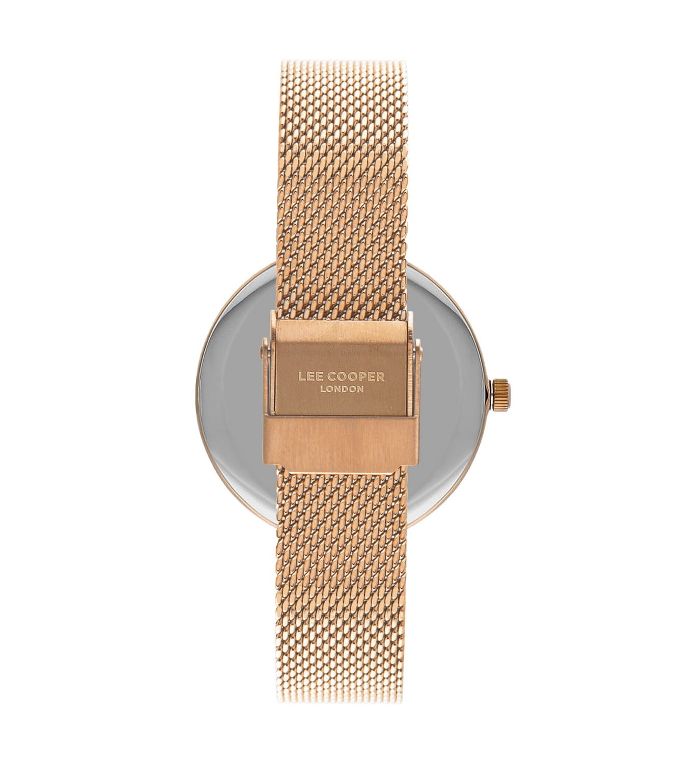 Женские часы Lee Cooper LC07806.420 выполнены в классическом стиле и сочетают строгий дизайн с надёжным механизмом. Модель оснащена кварцевым механизмом, обеспечивающим точность хода и минимальное обслуживание. Корпус круглой формы имеет размер 36 мм, изготовлен из суперметалла с IP-покрытиемIP-покрытиеМетод ионного напыления. Демонстрирует повышенную устойчивость к истиранию, окислению и химическим веществам. Под воздействием высокого давления и температуры около 1500°C молекулы металла надёжно соединяются с частицами корпуса часов., браслет — стальной миланского плетения с IP-покрытиемIP-покрытиеМетод ионного напыления. Демонстрирует повышенную устойчивость к истиранию, окислению и химическим веществам. Под воздействием высокого давления и температуры около 1500°C молекулы металла надёжно соединяются с частицами корпуса часов. с раскладным замкомРаскладной замокДанный вариант застежки используется только на часах с металлическим браслетом. Отличительная особенность такого крепления в том, что длина браслета становится универсальной и вы можете самостоятельно отрегулировать нужный вам размер – застежка просто двигается по браслету часов., что гарантирует комфорт при ношении. Изысканный циферблат дополнен индексами для чёткого отсчёта времени. Защиту циферблата обеспечивает минеральное стеклоМинеральное стеклоМинеральное стекло представляет собой искусственно выращенный минерал кварца. Такое стекло отличается особой устойчивостью к повреждениям и царапинам. Уступает по некоторым качествам сапфировому стеклу., устойчивое к мелким механическим повреждениям. Водозащита 3 АТМ позволяет использовать часы в повседневных условиях без риска повреждения от случайных брызг воды. В комплекте с часами идут два ожерелья. Это сочетание классического дизайна, прочности материалов и качества исполнения для уверенных в себе женщин.