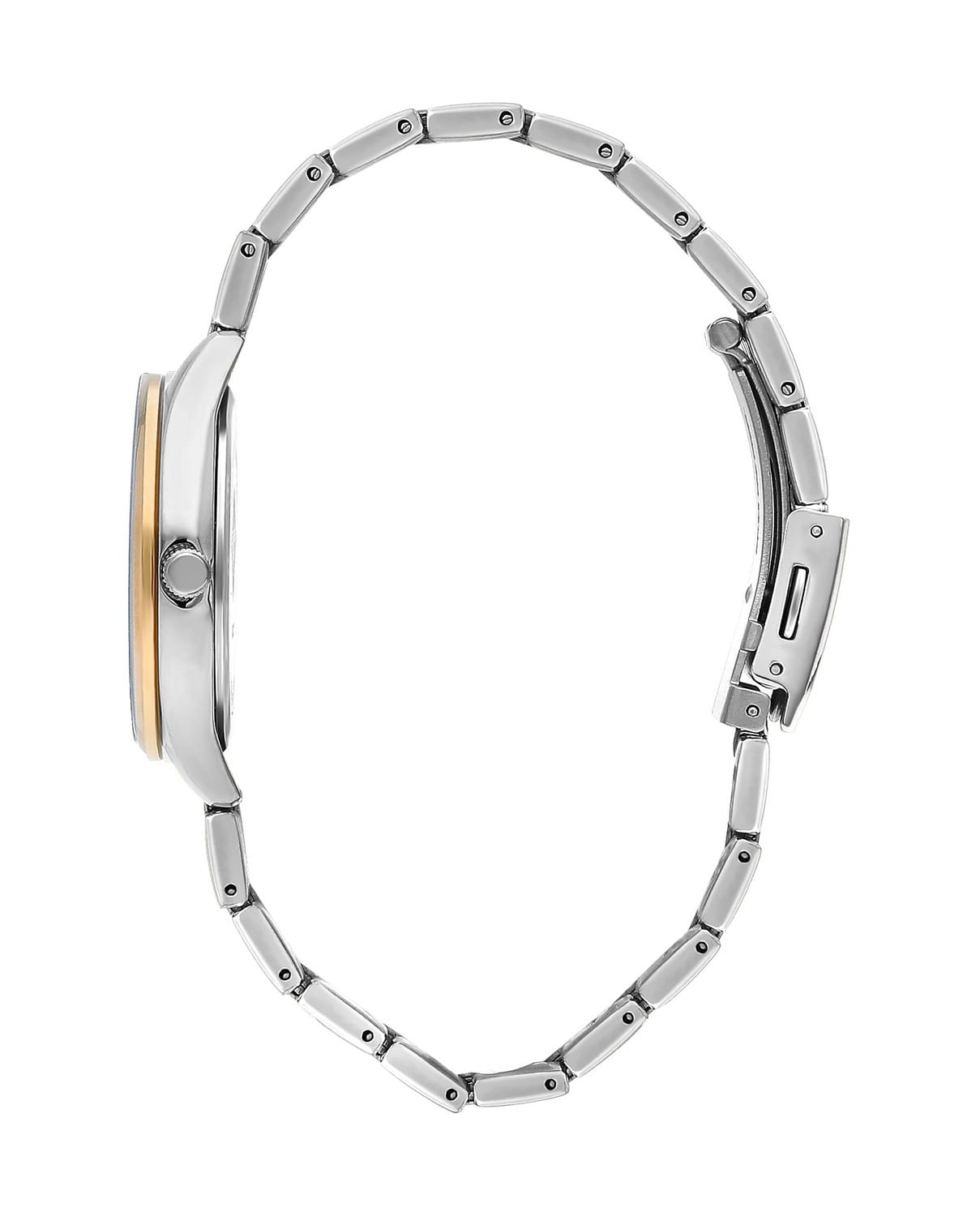Женские часы Lee Cooper LC07832.220 выполнены в классическом стиле и сочетают строгий дизайн с надёжным механизмом. Модель оснащена кварцевым механизмом, обеспечивающим точность хода и минимальное обслуживание. Корпус круглой формы имеет размер 34 мм, изготовлен из суперметалла с изысканным неподвижным безелемБезельВнешний ободок, закрепляющий стекло. В спортивных часах так называется поворотное кольцо с делениями на циферблате, выполняет роль таймера – замеряет отрезки времени на шкале. Неподвижный безель – элемент декора. Однонаправленно вращающийся безель на дайверских часах позволяет фиксировать моменты погружения и выныривания на поверхность. с IP-покрытиемIP-покрытиеМетод ионного напыления. Демонстрирует повышенную устойчивость к истиранию, окислению и химическим веществам. Под воздействием высокого давления и температуры около 1500°C молекулы металла надёжно соединяются с частицами корпуса часов., гарантирует комфорт при ношении. Циферблат дополнен изящными вставками из циркона для чёткого отсчёта времени. Защиту циферблата обеспечивает минеральное стеклоМинеральное стеклоМинеральное стекло представляет собой искусственно выращенный минерал кварца. Такое стекло отличается особой устойчивостью к повреждениям и царапинам. Уступает по некоторым качествам сапфировому стеклу., устойчивое к мелким механическим повреждениям. Стрелки с люминесцентным покрытиемЛюминесцентное покрытиеПозволяет считывать показания времени в темноте. Производители наносят на стрелки, часовые индексы, безель или поверхность циферблата светонакопительный состав, дающий холодное свечение.. Стальной браслет с частичным IP-покрытиемIP-покрытиеМетод ионного напыления. Демонстрирует повышенную устойчивость к истиранию, окислению и химическим веществам. Под воздействием высокого давления и температуры около 1500°C молекулы металла надёжно соединяются с частицами корпуса часов. на раскладной застёжкеРаскладная застёжкаТакой тип застёжки используется только на браслетах из металла. Она никогда не раскрывается полностью, происходит разделение на 2 и более частей. Раскладывающая застёжка снизит вероятность потери часов к минимуму. гарантирует удобную посадку и надёжную фиксацию на запястье. Водозащита 30WR позволяет использовать часы в повседневных условиях без риска повреждения от случайных брызг воды. Это сочетание классического дизайна, прочности материалов и качества исполнения для уверенных в себе женщин.