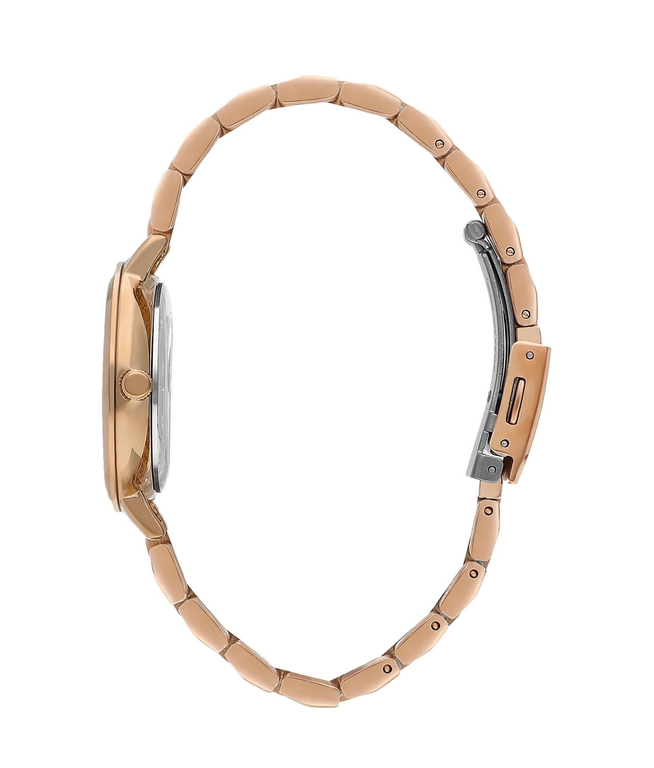 Женские часы Lee Cooper LC07857.420 — это стильное сочетание элегантности и современного дизайна. Изящный круглый корпус диаметром 34 мм выполнен из суперметалла с IP-покрытиемIP-покрытиеМетод ионного напыления. Демонстрирует повышенную устойчивость к истиранию, окислению и химическим веществам. Под воздействием высокого давления и температуры около 1500°C молекулы металла надёжно соединяются с частицами корпуса часов. золотого цвета, что придает модели особый блеск. Розовый циферблат защищен минеральным стекломМинеральное стеклоМинеральное стекло представляет собой искусственно выращенный минерал кварца. Такое стекло отличается особой устойчивостью к повреждениям и царапинам. Уступает по некоторым качествам сапфировому стеклу., обеспечивающим устойчивость к царапинам. Метки в виде штрихов. Часы оснащены надежным кварцевым механизмом, а стальной браслет с IP-покрытиемIP-покрытиеМетод ионного напыления. Демонстрирует повышенную устойчивость к истиранию, окислению и химическим веществам. Под воздействием высокого давления и температуры около 1500°C молекулы металла надёжно соединяются с частицами корпуса часов. золотого цвета на раскладной застёжкеРаскладная застёжкаТакой тип застёжки используется только на браслетах из металла. Она никогда не раскрывается полностью, происходит разделение на 2 и более частей. Раскладывающая застёжка снизит вероятность потери часов к минимуму. гарантирует комфортную посадку на запястье. Водозащита 30 метров защищает модель от случайных брызг и дождя. В комплекте к часам идет дополнительный браслет в цвет часов. Lee Cooper — отличный выбор для тех, кто ценит утонченность и качество.