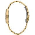 Женские часы Lee Cooper LC07863.170 — это стильное сочетание элегантности и современного дизайна. Круглый корпус диаметром 34 мм выполнен из суперметалла с IP-покрытиемIP-покрытиеМетод ионного напыления. Демонстрирует повышенную устойчивость к истиранию, окислению и химическим веществам. Под воздействием высокого давления и температуры около 1500°C молекулы металла надёжно соединяются с частицами корпуса часов. золотого цвета, а неподвижный безельБезельВнешний ободок, закрепляющий стекло. В спортивных часах так называется поворотное кольцо с делениями на циферблате, выполняет роль таймера – замеряет отрезки времени на шкале. Неподвижный безель – элемент декора. Однонаправленно вращающийся безель на дайверских часах позволяет фиксировать моменты погружения и выныривания на поверхность. украшен цирконами, придающими модели особый блеск. Серебристый циферблат защищен минеральным стекломМинеральное стеклоМинеральное стекло представляет собой искусственно выращенный минерал кварца. Такое стекло отличается особой устойчивостью к повреждениям и царапинам. Уступает по некоторым качествам сапфировому стеклу., обеспечивающим устойчивость к царапинам. Метки в виде штрихов. Часы оснащены надежным кварцевым механизмом, а металлический браслет с IP-покрытиемIP-покрытиеМетод ионного напыления. Демонстрирует повышенную устойчивость к истиранию, окислению и химическим веществам. Под воздействием высокого давления и температуры около 1500°C молекулы металла надёжно соединяются с частицами корпуса часов. на раскладной застёжкеРаскладная застёжкаТакой тип застёжки используется только на браслетах из металла. Она никогда не раскрывается полностью, происходит разделение на 2 и более частей. Раскладывающая застёжка снизит вероятность потери часов к минимуму. гарантирует комфортную посадку на запястье. Мультифункциональная модель с индикацией даты, дня недели, с дополнительным 24-х часовым индикатором. Водозащита 30 метров защищает модель от случайных брызг и дождя. Lee Cooper — отличный выбор для тех, кто ценит утонченность и качество.