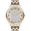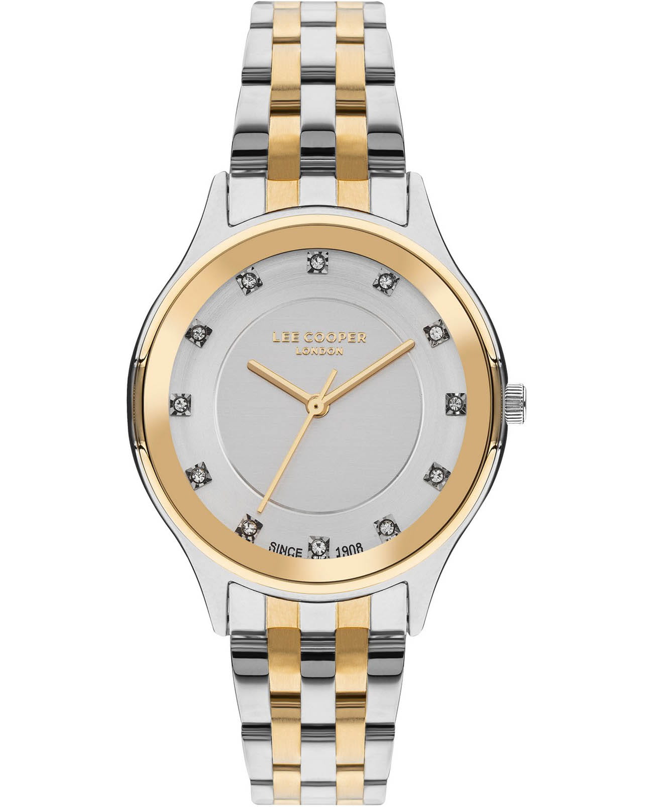 Женские часы Lee Cooper LC07867.230 выполнены в классическом стиле и сочетают строгий дизайн с надёжным механизмом. Модель оснащена кварцевым механизмом, обеспечивающим точность хода и минимальное обслуживание. Корпус круглой формы имеет размер 35 мм, изготовленный из суперметалла, идеально сбалансирован и элегантен. Неповоротный безельБезельВнешний ободок, закрепляющий стекло. В спортивных часах так называется поворотное кольцо с делениями на циферблате, выполняет роль таймера – замеряет отрезки времени на шкале. Неподвижный безель – элемент декора. Однонаправленно вращающийся безель на дайверских часах позволяет фиксировать моменты погружения и выныривания на поверхность. с IP-покрытиемIP-покрытиеМетод ионного напыления. Демонстрирует повышенную устойчивость к истиранию, окислению и химическим веществам. Под воздействием высокого давления и температуры около 1500°C молекулы металла надёжно соединяются с частицами корпуса часов.. Циферблат серебристого цвета дополнен вставками из циркона для чёткого отсчёта времени. Защиту циферблата обеспечивает минеральное стеклоМинеральное стеклоМинеральное стекло представляет собой искусственно выращенный минерал кварца. Такое стекло отличается особой устойчивостью к повреждениям и царапинам. Уступает по некоторым качествам сапфировому стеклу., устойчивое к мелким механическим повреждениям. Браслет из нержавеющей стали с частичным IP-покрытиемIP-покрытиеМетод ионного напыления. Демонстрирует повышенную устойчивость к истиранию, окислению и химическим веществам. Под воздействием высокого давления и температуры около 1500°C молекулы металла надёжно соединяются с частицами корпуса часов. фиксируется на раскладной застёжкеРаскладная застёжкаТакой тип застёжки используется только на браслетах из металла. Она никогда не раскрывается полностью, происходит разделение на 2 и более частей. Раскладывающая застёжка снизит вероятность потери часов к минимуму.. Водозащита 3 АТМ позволяет использовать часы в повседневных условиях без риска повреждения от случайных брызг воды. Это сочетание классического дизайна, прочности материалов и качества исполнения для уверенных в себе женщин.