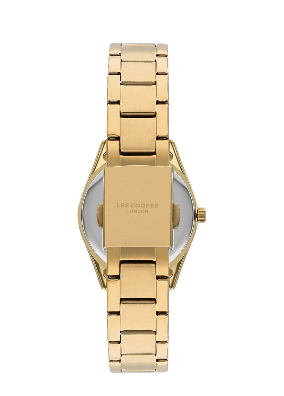 Женские часы Lee Cooper LC07868.130 выполнены в классическом стиле и сочетают строгий дизайн с надёжным механизмом. Модель оснащена кварцевым механизмом, обеспечивающим точность хода и минимальное обслуживание. Изящный корпус изготовлен из суперметалла с IP-покрытиемIP-покрытиеМетод ионного напыления. Демонстрирует повышенную устойчивость к истиранию, окислению и химическим веществам. Под воздействием высокого давления и температуры около 1500°C молекулы металла надёжно соединяются с частицами корпуса часов., гарантирует комфорт при ношении. Изысканный циферблат дополнен штрихами и римскими цифрами для чёткого отсчёта времени. Защиту циферблата обеспечивает минеральное стеклоМинеральное стеклоМинеральное стекло представляет собой искусственно выращенный минерал кварца. Такое стекло отличается особой устойчивостью к повреждениям и царапинам. Уступает по некоторым качествам сапфировому стеклу., устойчивое к мелким механическим повреждениям. Стальной браслет с IP-покрытиемIP-покрытиеМетод ионного напыления. Демонстрирует повышенную устойчивость к истиранию, окислению и химическим веществам. Под воздействием высокого давления и температуры около 1500°C молекулы металла надёжно соединяются с частицами корпуса часов. на раскладной застёжкеРаскладная застёжкаТакой тип застёжки используется только на браслетах из металла. Она никогда не раскрывается полностью, происходит разделение на 2 и более частей. Раскладывающая застёжка снизит вероятность потери часов к минимуму. гарантирует удобную посадку и надёжную фиксацию на запястье. Метки с люминесцентным покрытиемЛюминесцентное покрытиеПозволяет считывать показания времени в темноте. Производители наносят на стрелки, часовые индексы, безель или поверхность циферблата светонакопительный состав, дающий холодное свечение., обеспечивающим хорошую читаемость в темноте. Водозащита 30WR позволяет использовать часы в повседневных условиях без риска повреждения от случайных брызг воды. Это сочетание классического дизайна, прочности материалов и качества исполнения для уверенных в себе женщин.