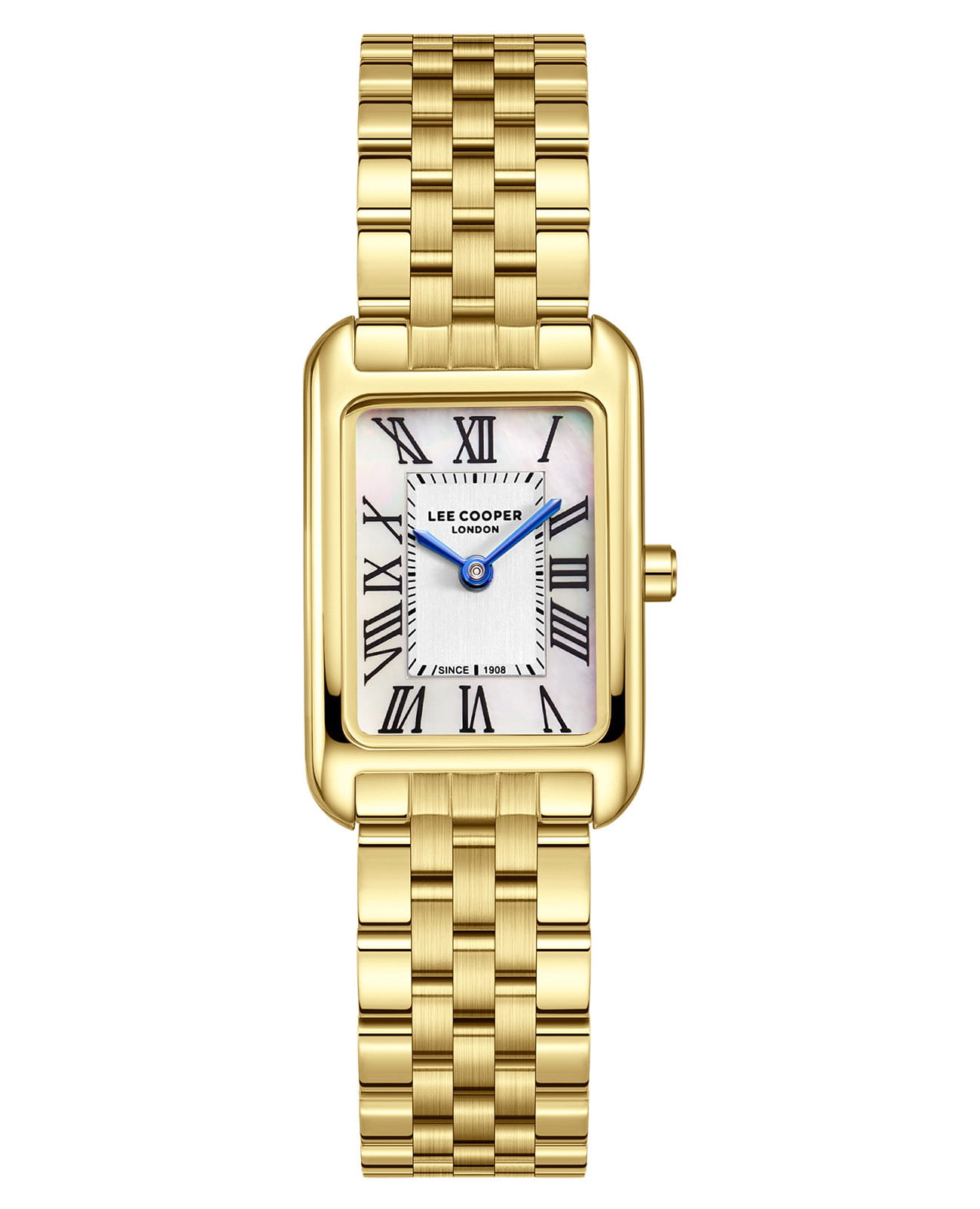 Женские кварцевые часы Lee Cooper — это стильный аксессуар, сочетающий в себе элегантность и надёжность. Модель выполнена из с частичным IP-покрытиемIP-покрытиеМетод ионного напыления. Демонстрирует повышенную устойчивость к истиранию, окислению и химическим веществам. Под воздействием высокого давления и температуры около 1500°C молекулы металла надёжно соединяются с частицами корпуса часов. цвета жёлтого золота, что придаёт ей благородный внешний вид и устойчивость к царапинам. Корпус имеет размеры 21x31 мм, а его поверхность защищена минеральным закалённым стекломМинеральное стеклоМинеральное стекло представляет собой искусственно выращенный минерал кварца. Такое стекло отличается особой устойчивостью к повреждениям и царапинам. Уступает по некоторым качествам сапфировому стеклу., устойчивым к повреждениям. Стальной браслет с покрытием шириной 18 мм оснащён Раскладная застёжкаРаскладная застёжкаТакой тип застёжки используется только на браслетах из металла. Она никогда не раскрывается полностью, происходит разделение на 2 и более частей. Раскладывающая застёжка снизит вероятность потери часов к минимуму., обеспечивающей комфорт и надёжную фиксацию на запястье. Водонепроницаемость позволяет использовать модель при мытье рук или под лёгким дождём. Гарантия 2 года подтверждает качество и долговечность изделия. Эти часы станут универсальным аксессуаром для тех, кто ценит сочетание стиля, функциональности и безупречного качества — идеальный выбор для повседневной носки и торжественных случаев.