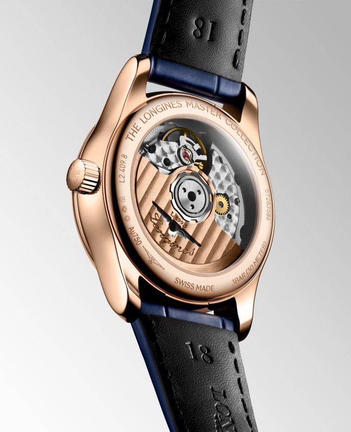 Longines Master Collection Moonphase L2.409.8.87.2 — изысканные женские часы с усложнённым механизмом и элегантным обликом. Корпус диаметром 34 мм выполнен из 18-каратного розового золота, что придаёт модели благородное тепло и утончённость. Аккуратные ушки и плавные линии делают посадку особенно комфортной.