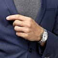 Серебристый циферблат дополнен стрелками и метками с люминесцентной подсветкойЛюминесцентное покрытиеПозволяет считывать показания времени в темноте. Производители наносят на стрелки, часовые индексы, безель или поверхность циферблата светонакопительный состав, дающий холодное свечение.. Швейцарский кварцевый механизм L288 обеспечивает максимальную точность хода. Антибликовое покрытиеАнтибликовое покрытиеСлой оксида металла в 0,13-0,3 микрон, благодаря которому стекло часов не бликует и не отражает свет. Антибликовое покрытие уменьшает отражение света в 10 раз, обеспечивая отличную читаемость показателей циферблата. сапфирового стекла улучшает читаемость показаний. Дополнительные возможности: , индикатор EOLEOLПредставляет собой систему, уведомляющую владельца часов о необходимости замены элемента питания. За 2 недели до полного разряда батарейки секундная стрелка перестаёт ходить чётко и начинает перепрыгивать на 3-4 деления..