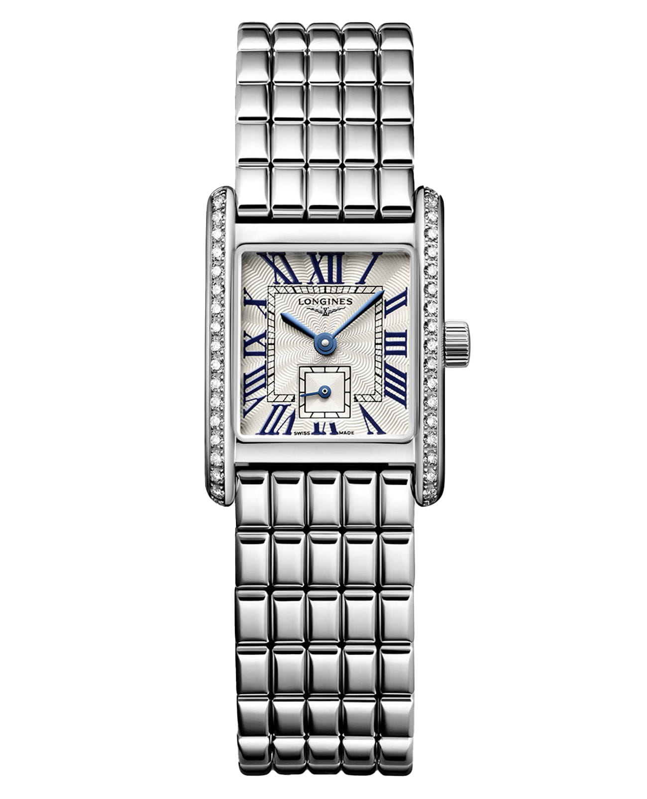 Женские швейцарские часы Longines DolceVita L5.200.0.71.6, кварцевый механизм с высокой точностью. Сапфировое стеклоСапфировое стеклоПрочный и надёжный материал из кристалла сапфира синтетического происхождения, характеризующийся особой твёрдостью и устойчивостью к царапинам и повреждениям. устойчивое к появлению царапин, обладающее высокой прозрачностью. Сияющий корпус этих часов украшен 38 бриллиантами IF-VVS Top Wesselton.Циферблат украшен узором «Flinque», метки в виде римских цифр. Малая секундная стрелка в положении 6 часов. Класс водозащиты: 30 метров, позволит защитить корпус от случайных брызг или капель дождя. Браслет из нержавеющей стали на застёжке «бабочка» с кнопкамиЗастёжка "бабочка"Такой вид застёжки дополняется предохранителями, помогающими избежать случайного раскрытия браслета. Обладают изящным исполнением. .