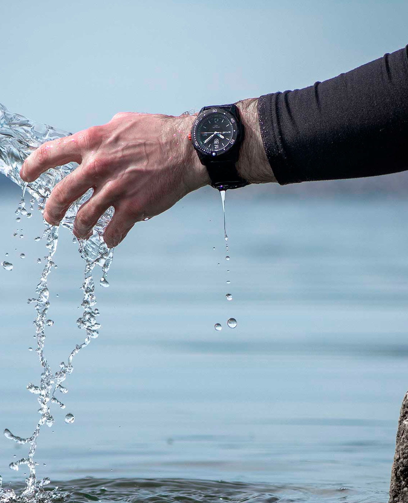 Мужские наручные часы Luminox Bear Grylls Survival ECO NO PLANET B XB.3722.ECO сочетают в себе экологичность и функциональность для любителей активного образа жизни. Модель обладает круглым корпусом диаметром 43 мм, изготовленным из переработанного океанского пластика, что обеспечивает высокую устойчивость к внешним воздействиям при минимальном воздействии на окружающую среду. Браслет выполнен из нейлона черного цвета на стандартной застежке, гарантирующей комфортное ношение и безопасность. Циферблат черного цвета оснащен индикацией времени и даты, а также люминесцентными элементами для видимости в темноте. Для защиты используется минеральное стеклоМинеральное стеклоМинеральное стекло представляет собой искусственно выращенный минерал кварца. Такое стекло отличается особой устойчивостью к повреждениям и царапинам. Уступает по некоторым качествам сапфировому стеклу., обеспечивающее прочную защиту от царапин. Часы комплектуются вращающимся безелемБезельВнешний ободок, закрепляющий стекло. В спортивных часах так называется поворотное кольцо с делениями на циферблате, выполняет роль таймера – замеряет отрезки времени на шкале. Неподвижный безель – элемент декора. Однонаправленно вращающийся безель на дайверских часах позволяет фиксировать моменты погружения и выныривания на поверхность. с односторонним вращением, полезным для подсчета времени погружения или других временных интервалов.Часы работают на кварцевом механизме Ronda 515, который обеспечивает точное время без необходимости подзаводки, при этом срок службы батарейки составляет около 3-4 лет. Водонепроницаемость часов достигает 200 метров (20 атмосфер), что позволяет использовать их при плавании, дайвинге и других водных видах спорта. Luminox XB.3722.ECO — это не просто аксессуар, а инструмент для выживания, созданный в сотрудничестве с Bear Grylls, который подчеркивает важность защиты нашей планеты через использование материалов из переработанного пластика.