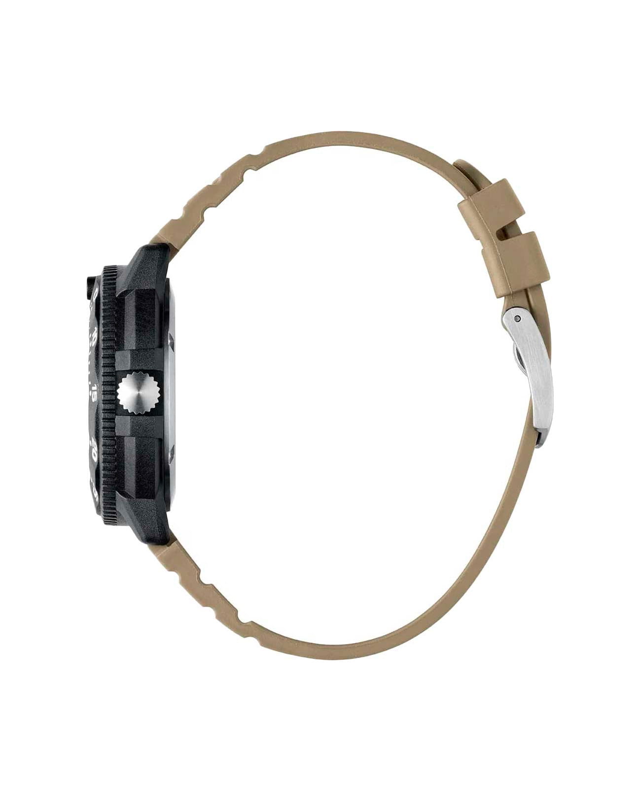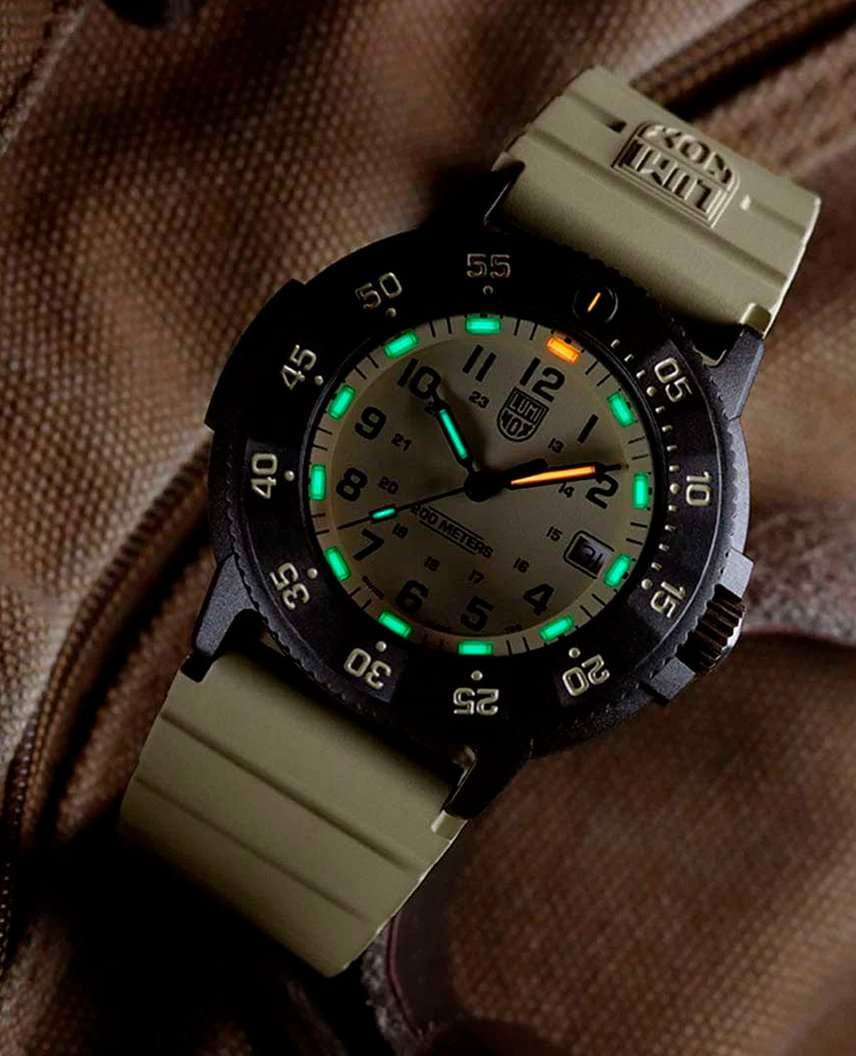 Мужские наручные часы Luminox XS.3010.EVO.S из коллекции Original Navy SEAL сочетают в себе спортивный дизайн и надежность швейцарского качества . Модель обладает круглым корпусом диаметром 43 мм, изготовленным из карбонаКарбонОт «carbon», «carbone» - углерод, углепластик - полимерный композиционный материал из переплетённых под определенным углом между собой нитей углеродного волокна, применяется для изготовления лёгких, но прочных деталей. В часах часто используют для украшения циферблатов и ремешков. Так же карбон используется в изготовлении корпусов. Такие корпуса обладают антикоррозионным свойством, не поддаются электромагнитному излучению, обладают повышенной прочностью и противоударностью. (CARBONOX™), что обеспечивает высокую устойчивость к внешним воздействиям при сохранении легкости. Циферблат песочного цвета украшен контрастными метками и стрелками с , гарантирующим постоянную видимость времени даже в условиях низкой освещенности благодаря системе LLTLLTLLT — это автономный механизм подсветки, основанный на использовании микроскопических газонаполненных элементов. Специальные герметичные капсулы из боросиликатного стекла, интегрированные в циферблат, генерируют свечение без необходимости подключения к внешним источникам энергии. Для их работы не требуется ни дополнительный свет, ни механическое воздействие (например, нажатие кнопки). Свечение возникает благодаря химическому процессу: реакция между тритием, заключенным в капсулах, и люминофорным покрытием создает стабильное автономное освещение. Технология обеспечивает энергетическую независимость и долговечность подсветки. (микрогазовые огни). Часы оснащены кварцевым механизмом швейцарского производства, обеспечивающим точность хода ±15 секунд в месяц. Защиту циферблата обеспечивает прочное сапфировое стеклоСапфировое стеклоПрочный и надёжный материал из кристалла сапфира синтетического происхождения, характеризующийся особой твёрдостью и устойчивостью к царапинам и повреждениям. с антибликовым покрытиемАнтибликовое покрытиеСлой оксида металла в 0,13-0,3 микрон, благодаря которому стекло часов не бликует и не отражает свет. Антибликовое покрытие уменьшает отражение света в 10 раз, обеспечивая отличную читаемость показателей циферблата., устойчивое к царапинам и механическим повреждениям . Водонепроницаемость модели достигает 20 атмосфер (200 метров), что делает их подходящими для плавания и активного отдыха на воде, включая дайвинг. Модель также оснащена безелемБезельВнешний ободок, закрепляющий стекло. В спортивных часах так называется поворотное кольцо с делениями на циферблате, выполняет роль таймера – замеряет отрезки времени на шкале. Неподвижный безель – элемент декора. Однонаправленно вращающийся безель на дайверских часах позволяет фиксировать моменты погружения и выныривания на поверхность. с односторонним вращением, что добавляет функциональности при использовании в водных условиях. Ремешок выполнен из каучука, что обеспечивает комфортное ношение в течение дня. Дополнительно часы имеют окно даты в положении «3 часа», что делает их практичными для повседневного использования. Сочетание современных технологий, надежности и стильного дизайна делает Luminox XS.3010.EVO.S идеальным выбором для ценителей качественных аксессуаров.