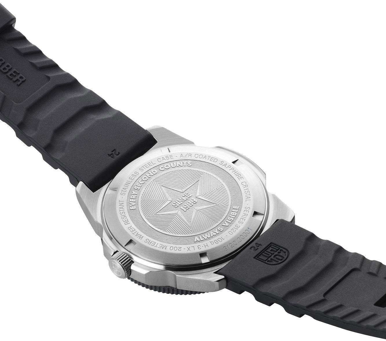 Швейцарские наручные часы Luminox Pacific Diver XS.3135 – это истинный шедевр в мире часового искусства, сочетающий в себе передовые технологии и стильный дизайн. Эти часы оснащены высокоточным кварцевым механизмом, что гарантирует точность в отслеживании времени, необходимую в условиях активного образа жизни. Защищенный сапфировым стекломСапфировое стеклоПрочный и надёжный материал из кристалла сапфира синтетического происхождения, характеризующийся особой твёрдостью и устойчивостью к царапинам и повреждениям. с с антибликовым покрытиемАнтибликовое покрытиеСлой оксида металла в 0,13-0,3 микрон, благодаря которому стекло часов не бликует и не отражает свет. Антибликовое покрытие уменьшает отражение света в 10 раз, обеспечивая отличную читаемость показателей циферблата., циферблат обеспечивает надежную защиту от царапин, сохраняя идеальную прозрачность и ясность отображения времени. Корпус часов изготовлен из прочной стали, что свидетельствует о высоком качестве материалов и устойчивости к износу. Стрелки с LLTLLTLLT — это автономный механизм подсветки, основанный на использовании микроскопических газонаполненных элементов. Специальные герметичные капсулы из боросиликатного стекла, интегрированные в циферблат, генерируют свечение без необходимости подключения к внешним источникам энергии. Для их работы не требуется ни дополнительный свет, ни механическое воздействие (например, нажатие кнопки). Свечение возникает благодаря химическому процессу: реакция между тритием, заключенным в капсулах, и люминофорным покрытием создает стабильное автономное освещение. Технология обеспечивает энергетическую независимость и долговечность подсветки.-подсветкой, позволяют легко считывать время даже в условиях недостаточного освещения, добавляя удобства в ночное время. На циферблате также предусмотрено окошко даты, расположенное в удобном положении 3 часа, что позволяет быстро и просто ориентироваться в текущей дате. С классом водозащиты 200 метров эти часы идеально подходят для любителей водных видов спорта, будь то плавание или ныряние, предоставляя уверенность в их целостности даже под водой. Каучуковый ремешок, оснащенный стандартной застежкой, обеспечивает комфортную и надежную посадку на запястье, что делает их идеальными для повседневного использования. Дизайн завершается стильным вращающимся безелемБезельВнешний ободок, закрепляющий стекло. В спортивных часах так называется поворотное кольцо с делениями на циферблате, выполняет роль таймера – замеряет отрезки времени на шкале. Неподвижный безель – элемент декора. Однонаправленно вращающийся безель на дайверских часах позволяет фиксировать моменты погружения и выныривания на поверхность. из карбонаКарбонОт «carbon», «carbone» - углерод, углепластик - полимерный композиционный материал из переплетённых под определенным углом между собой нитей углеродного волокна, применяется для изготовления лёгких, но прочных деталей. В часах часто используют для украшения циферблатов и ремешков. Так же карбон используется в изготовлении корпусов. Такие корпуса обладают антикоррозионным свойством, не поддаются электромагнитному излучению, обладают повышенной прочностью и противоударностью., который не только усиливает общий эстетический вид часов, но и придает им дополнительную 