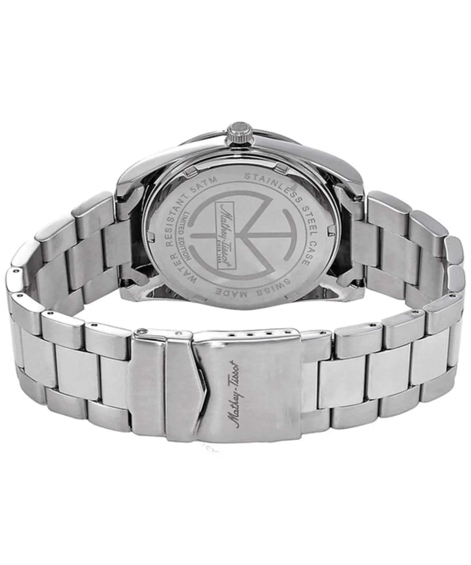 Мужские кварцевые часы Mathey-Tissot Mathy H451BU — это стильное сочетание элегантности и современного дизайна. Лимитированная серия. Изящный корпус выполнен из нержавеющей стали, диаметром 42 мм, что придаст образу элегантности и надежности. Изысканный циферблат с метками в виде штрихов придает модели особый блеск. Циферблат защищен минеральным стекломМинеральное стеклоМинеральное стекло представляет собой искусственно выращенный минерал кварца. Такое стекло отличается особой устойчивостью к повреждениям и царапинам. Уступает по некоторым качествам сапфировому стеклу., обеспечивает устойчивость к царапинам. Стрелки и метки с люминесцентным покрытиемЛюминесцентное покрытиеПозволяет считывать показания времени в темноте. Производители наносят на стрелки, часовые индексы, безель или поверхность циферблата светонакопительный состав, дающий холодное свечение.. Окошко даты находится в положении 3 часа. Часы оснащены надежным кварцевым механизмом. Стальной браслет на раскладной застёжке с фиксаторомРаскладная застёжкаТакой тип застёжки используется только на браслетах из металла. Она никогда не раскрывается полностью, происходит разделение на 2 и более частей. Раскладывающая застёжка снизит вероятность потери часов к минимуму., гарантирует комфортное и безопасное ношение. Рифленая заводная головка. Класс водозащиты: 50 метров, позволит защитить корпус от случайных брызг или капель дождя. Mathey-Tissot  — отличный выбор для тех, кто ценит утонченность и качество.