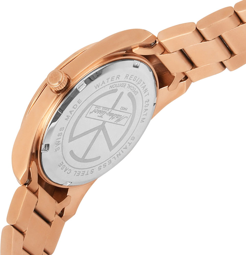 Мужские кварцевые часы Mathey-Tissot Mathy H452PRM — это стильное сочетание элегантности и современного дизайна. Изящный корпус выполнен из нержавеющей стали с PVD-покрытиемPVDУльтратонкое покрытие наносится в технике вакуумного напыления, сочетает в себе нитрид титана особой прочности со слоем золота или оксида хрома. Несёт в себе декоративную или защитную функцию. цвета розового золота, диаметром 42 мм, что придаст образу элегантности и надежности. Изысканный циферблат с метками в виде штрихов придает модели особый блеск. Циферблат защищен минеральным стекломМинеральное стеклоМинеральное стекло представляет собой искусственно выращенный минерал кварца. Такое стекло отличается особой устойчивостью к повреждениям и царапинам. Уступает по некоторым качествам сапфировому стеклу., обеспечивает устойчивость к царапинам. Стрелки и метки с люминесцентным покрытиемЛюминесцентное покрытиеПозволяет считывать показания времени в темноте. Производители наносят на стрелки, часовые индексы, безель или поверхность циферблата светонакопительный состав, дающий холодное свечение.. Окошко даты находится в положении 3 часа. Часы оснащены надежным кварцевым механизмом. Стальной браслет с PVD-покрытиемPVDУльтратонкое покрытие наносится в технике вакуумного напыления, сочетает в себе нитрид титана особой прочности со слоем золота или оксида хрома. Несёт в себе декоративную или защитную функцию. на раскладной застёжке с фиксаторомРаскладная застёжкаТакой тип застёжки используется только на браслетах из металла. Она никогда не раскрывается полностью, происходит разделение на 2 и более частей. Раскладывающая застёжка снизит вероятность потери часов к минимуму., гарантирует комфортное и безопасное ношение. Рифленая заводная головка. Класс водозащиты: 200 метров, позволит плавать нырять и заниматься другими водными видами спорта. Mathey-Tissot  — отличный выбор для тех, кто ценит утонченность и качество.