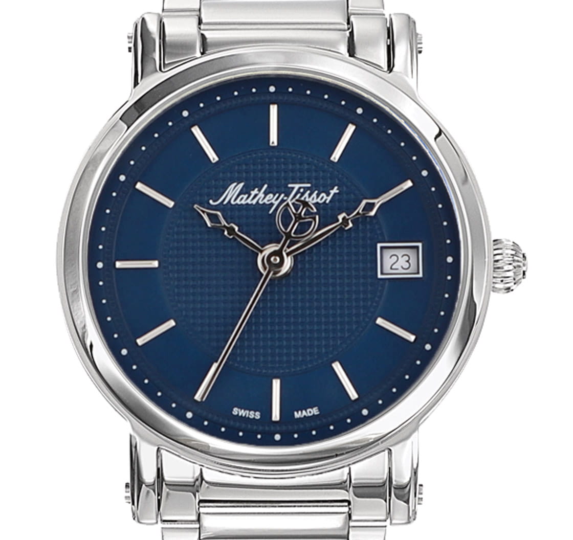 Мужские кварцевые часы Mathey-Tissot City Metal H611251MABU — это стильное сочетание элегантности и современного дизайна. Изящный корпус выполнен из нержавеющей стали 316L серебристого цвета, диаметром 38 мм, что придаст образу элегантности и надежности. Изысканный циферблат с метками в виде штрихов придает модели особый блеск. Циферблат защищен минеральным стекломМинеральное стеклоМинеральное стекло представляет собой искусственно выращенный минерал кварца. Такое стекло отличается особой устойчивостью к повреждениям и царапинам. Уступает по некоторым качествам сапфировому стеклу. с сапфировым покрытием, обеспечивающий устойчивость к царапинам. Окошко даты находится в положении 3 часа. Часы оснащены надежным кварцевым механизмом. Стальной браслет на раскладной застёжкеРаскладная застёжкаТакой тип застёжки используется только на браслетах из металла. Она никогда не раскрывается полностью, происходит разделение на 2 и более частей. Раскладывающая застёжка снизит вероятность потери часов к минимуму., гарантирует комфортное и безопасное ношение. Класс водозащиты: 30 метров позволит защитить корпус от случайных брызг или капель дождя. Mathey-Tissot — отличный выбор для тех, кто ценит утонченность и качество.