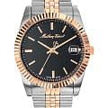 Мужские кварцевые часы Mathey-Tissot Mathy H810RN — это стильное сочетание элегантности и современного дизайна. Изящный корпус выполнен из нержавеющей стали, диаметром 40 мм, что придаст образу элегантности и надежности. Изысканный циферблат с метками в виде штрихов придает модели особый блеск. Циферблат защищен минеральным стекломМинеральное стеклоМинеральное стекло представляет собой искусственно выращенный минерал кварца. Такое стекло отличается особой устойчивостью к повреждениям и царапинам. Уступает по некоторым качествам сапфировому стеклу., обеспечивает устойчивость к царапинам. Стрелки с люминесцентным покрытиемЛюминесцентное покрытиеПозволяет считывать показания времени в темноте. Производители наносят на стрелки, часовые индексы, безель или поверхность циферблата светонакопительный состав, дающий холодное свечение., которое светится в темноте после непродолжительной зарядки на свету. БезельБезельВнешний ободок, закрепляющий стекло. В спортивных часах так называется поворотное кольцо с делениями на циферблате, выполняет роль таймера – замеряет отрезки времени на шкале. Неподвижный безель – элемент декора. Однонаправленно вращающийся безель на дайверских часах позволяет фиксировать моменты погружения и выныривания на поверхность. с PVD-покрытиемPVDУльтратонкое покрытие наносится в технике вакуумного напыления, сочетает в себе нитрид титана особой прочности со слоем золота или оксида хрома. Несёт в себе декоративную или защитную функцию. цвета розового золота. Окошко даты находится в положении 3 часа. Часы оснащены надежным кварцевым механизмом. Стальной браслет с частичным PVD-покрытиемPVDУльтратонкое покрытие наносится в технике вакуумного напыления, сочетает в себе нитрид титана особой прочности со слоем золота или оксида хрома. Несёт в себе декоративную или защитную функцию. на раскладной застёжке с фиксаторомРаскладная застёжкаТакой тип застёжки используется только на браслетах из металла. Она никогда не раскрывается полностью, происходит разделение на 2 и более частей. Раскладывающая застёжка снизит вероятность потери часов к минимуму., гарантирует комфортное и безопасное ношение. Рифленая заводная головка. Класс водозащиты: 50 метров позволит защитить корпус от случайных брызг или капель дождя. Mathey-Tissot  — отличный выбор для тех, кто ценит утонченность и качество.