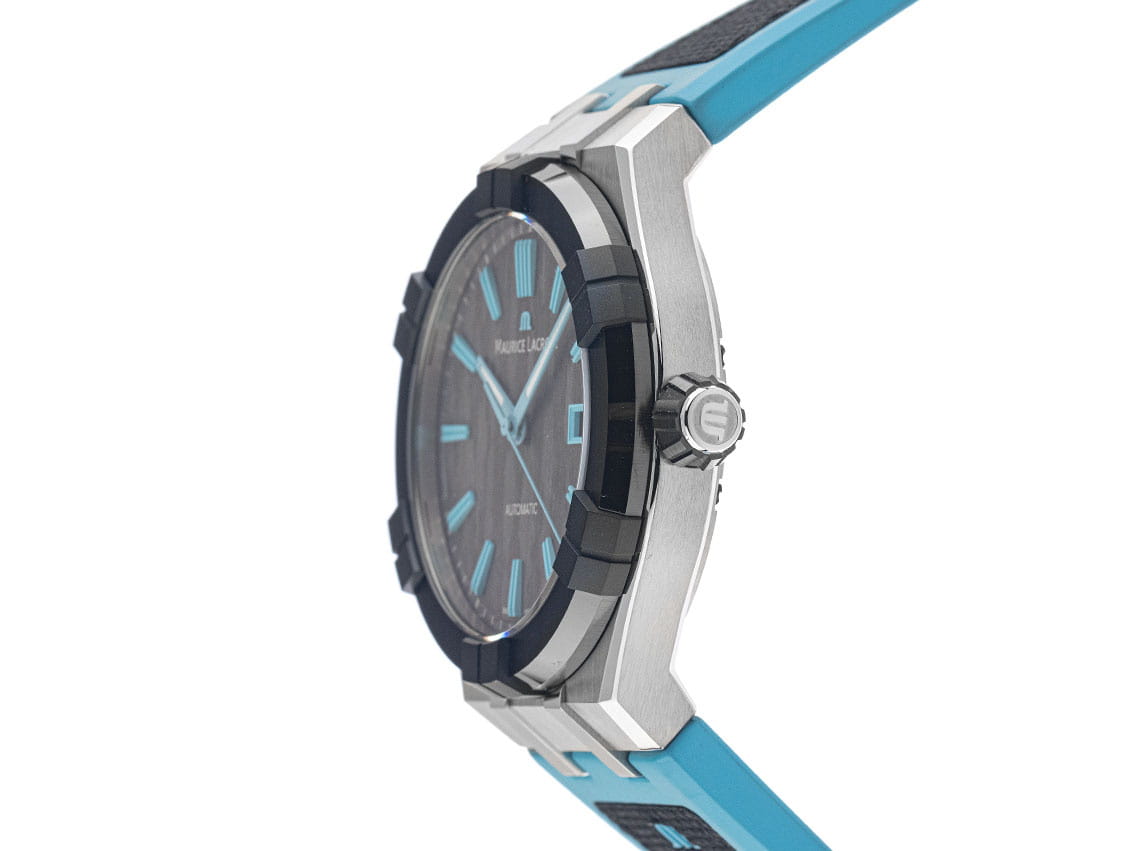 Мужские швейцарские часы Maurice Lacroix Aikon Automatic 43 mm AC6008-SSL40-331-4 с механическим механизмом (автоматический калибр) с высокой точностью. Изысканный циферблат защищен сапфировым стекломСапфировое стеклоПрочный и надёжный материал из кристалла сапфира синтетического происхождения, характеризующийся особой твёрдостью и устойчивостью к царапинам и повреждениям. с антибликовым покрытиемАнтибликовое покрытиеСлой оксида металла в 0,13-0,3 микрон, благодаря которому стекло часов не бликует и не отражает свет. Антибликовое покрытие уменьшает отражение света в 10 раз, обеспечивая отличную читаемость показателей циферблата., устойчивым к царапинам. Эта выразительная модель с корпусом из нержавеющей стали c неподвижным безелемБезельВнешний ободок, закрепляющий стекло. В спортивных часах так называется поворотное кольцо с делениями на циферблате, выполняет роль таймера – замеряет отрезки времени на шкале. Неподвижный безель – элемент декора. Однонаправленно вращающийся безель на дайверских часах позволяет фиксировать моменты погружения и выныривания на поверхность. с керамикой. Стрелки оснащены люминесцентным покрытиемЛюминесцентное покрытиеПозволяет считывать показания времени в темноте. Производители наносят на стрелки, часовые индексы, безель или поверхность циферблата светонакопительный состав, дающий холодное свечение. SuperLumiNova®, обеспечивающим хорошую читаемость в темноте. Водозащита: 100 метров, позволит плавать, нырять. Удобный каучуковый браслет со стандартной застежкой для максимального комфорта и лёгкости в повседневном использовании. Модель подчёркивает индивидуальность владельца и идеально подходит как для повседневного образа.