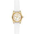 Женские американские часы Michael Kors Lexington MK4900 имеют кварцевый механизм с высокой точностью. Корпус часов изготовлен из нержавеющей стали с PVD-покрытиемPVDУльтратонкое покрытие наносится в технике вакуумного напыления, сочетает в себе нитрид титана особой прочности со слоем золота или оксида хрома. Несёт в себе декоративную или защитную функцию. золотистого цвета, диаметром 19 мм. Циферблат с метками в виде римских цифр защищен минеральным стекломМинеральное стеклоМинеральное стекло представляет собой искусственно выращенный минерал кварца. Такое стекло отличается особой устойчивостью к повреждениям и царапинам. Уступает по некоторым качествам сапфировому стеклу., что обеспечивает надежную защиту от царапин и повреждений. Неподвижный рифленый безельБезельВнешний ободок, закрепляющий стекло. В спортивных часах так называется поворотное кольцо с делениями на циферблате, выполняет роль таймера – замеряет отрезки времени на шкале. Неподвижный безель – элемент декора. Однонаправленно вращающийся безель на дайверских часах позволяет фиксировать моменты погружения и выныривания на поверхность.. Класс водозащиты: 50 метров позволит защитить корпус от случайных брызг или капель дождя. Удобный кожаный ремешок с фирменным рисунком и классической застежкой обеспечивает надежную фиксацию на запястье и легкость в надевании и снятии. Эти часы станут отличным дополнением к любому наряду, подчеркивая индивидуальность и стиль их обладательницы. Идеальный аксессуар, который придаст женскому образу завершенность и особый шарм.
