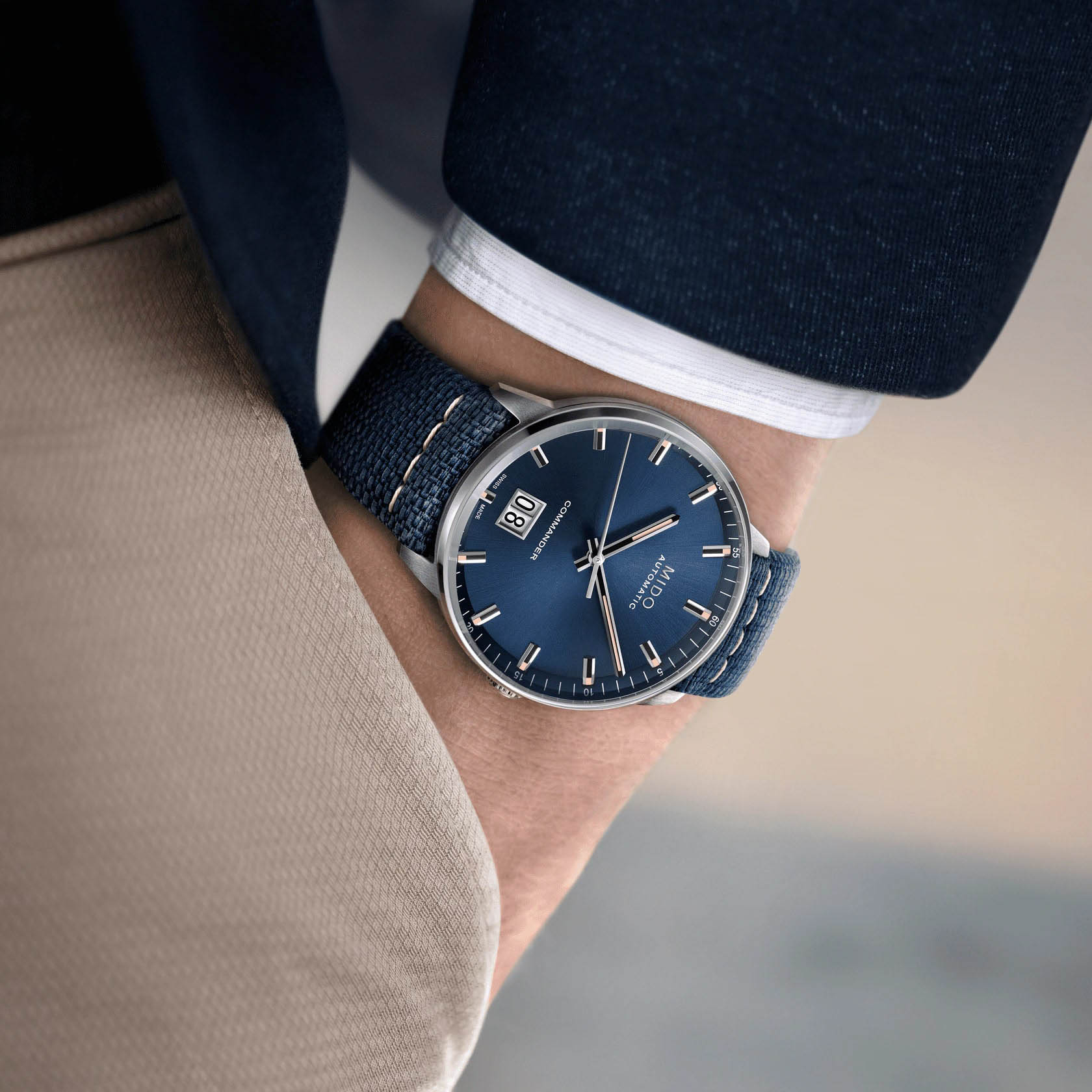 Мужские швейцарские механические часы Mido Commander Big Date M021.626.17.041.00, механический механизм (автоматический калибр) с высокой точностью. Часы Commander Big Date выпущены в честь 100-летнего юбилея марки. Крупное окошко даты в положении «6 часов» обеспечивает предельно удобную читаемость показаний. Сатинированный циферблат с солнечным узором отличается удивительной чистотой и строгостью, которую подчеркивает полированный безель. Сапфировое стеклоСапфировое стеклоПрочный и надёжный материал из кристалла сапфира синтетического происхождения, характеризующийся особой твёрдостью и устойчивостью к царапинам и повреждениям. устойчивое к появлению царапин, обладающее высокой прозрачностью. Класс водозащиты: 50 метров, позволит защитить корпус от случайных брызг или капель дождя. Корпус часов изготовлен из стали.
