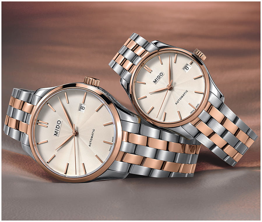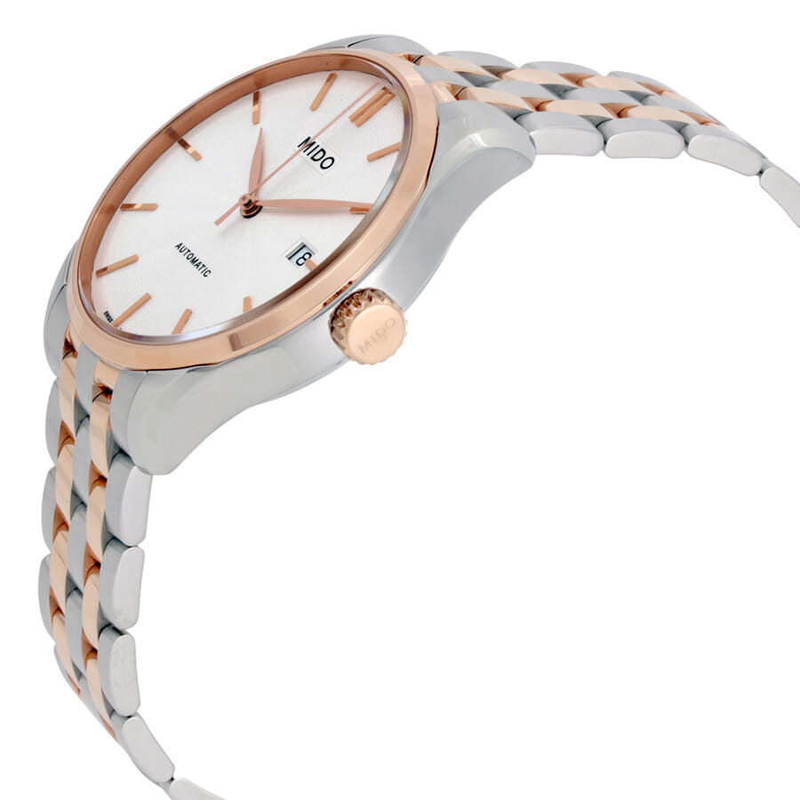 Мужские швейцарские механические часы с сапфировым стекломСапфировое стеклоПрочный и надёжный материал из кристалла сапфира синтетического происхождения, характеризующийся особой твёрдостью и устойчивостью к царапинам и повреждениям. Mido Belluna M024.427.11.031.00, оснащенные механизмом Caliber 80 часы Belluna со стрелками и часовыми метками с PVD-покрытиемPVDУльтратонкое покрытие наносится в технике вакуумного напыления, сочетает в себе нитрид титана особой прочности со слоем золота или оксида хрома. Несёт в себе декоративную или защитную функцию. цвета розового золота, прямоугольными индексами. Посредством исключительно сложной технологии, на компоненты часов наносится PVDPVDУльтратонкое покрытие наносится в технике вакуумного напыления, сочетает в себе нитрид титана особой прочности со слоем золота или оксида хрома. Несёт в себе декоративную или защитную функцию. покрытие, которое обеспечивает длительную защиту металла от коррозии.