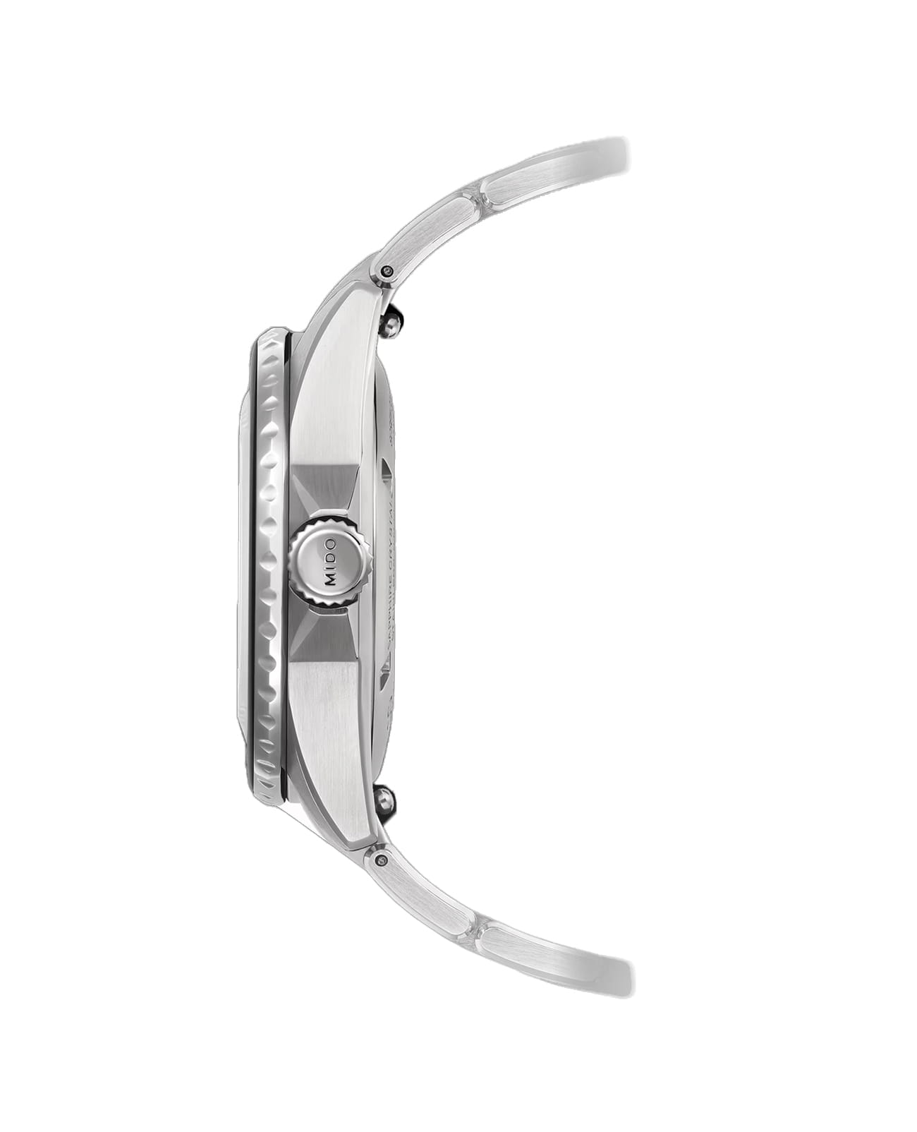 Женские швейцарские механические часы с сапфировым стеклом Mido Ocean Star 36.5 M026.207.11.041.00, механический механизм (автоматический калибр) с высокой точностью. Сапфировое стеклоСапфировое стеклоПрочный и надёжный материал из кристалла сапфира синтетического происхождения, характеризующийся особой твёрдостью и устойчивостью к царапинам и повреждениям. устойчивое к появлению царапин, обладающее высокой прозрачностью. Корпус часов изготовлен из стали. Вращающийся безельБезельВнешний ободок, закрепляющий стекло. В спортивных часах так называется поворотное кольцо с делениями на циферблате, выполняет роль таймера – замеряет отрезки времени на шкале. Неподвижный безель – элемент декора. Однонаправленно вращающийся безель на дайверских часах позволяет фиксировать моменты погружения и выныривания на поверхность. из нержавеющей стали с PVDPVDУльтратонкое покрытие наносится в технике вакуумного напыления, сочетает в себе нитрид титана особой прочности со слоем золота или оксида хрома. Несёт в себе декоративную или защитную функцию. покрытием и керамики с покрытием Superluminova. Циферблат украшают метки с бриллиантами. Стрелки с люминесцентным покрытиемЛюминесцентное покрытиеПозволяет считывать показания времени в темноте. Производители наносят на стрелки, часовые индексы, безель или поверхность циферблата светонакопительный состав, дающий холодное свечение.. Окошко в положении 6 часов. Класс водозащиты: 200 метров, позволит плавать, нырять и заниматься другими водными видами спорта. Стальной браслет на раскладной застёжкеРаскладная застёжкаТакой тип застёжки используется только на браслетах из металла. Она никогда не раскрывается полностью, происходит разделение на 2 и более частей. Раскладывающая застёжка снизит вероятность потери часов к минимуму..
