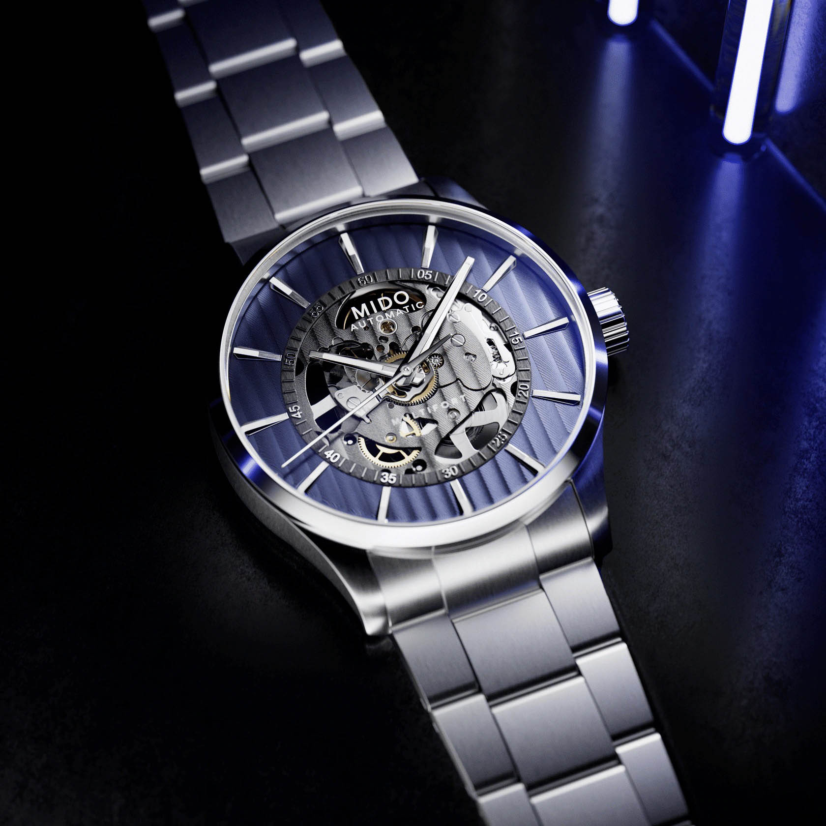 Швейцарские механические часы Mido Multifort Skeleton Vertigo M038.436.11.041.00
