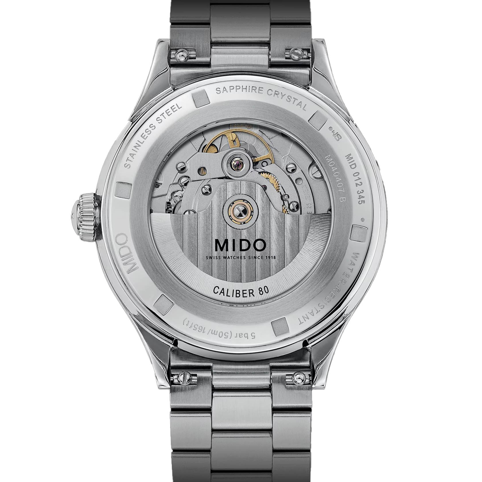 Мужские швейцарские механические часы с автоподзаводом Mido Multifort Patrimony Powerwind M040.407.11.031.00, механический механизм (автоматический калибр) с высокой точностью. Сапфировое стеклоСапфировое стеклоПрочный и надёжный материал из кристалла сапфира синтетического происхождения, характеризующийся особой твёрдостью и устойчивостью к царапинам и повреждениям. устойчивое к появлению царапин, обладающее высокой прозрачностью. Класс водозащиты: 50 метров, позволит защитить корпус от случайных брызг или капель дождя. Корпус часов изготовлен из нержавеющей стали. Стрелки и метки с люминесцентным покрытиемЛюминесцентное покрытиеПозволяет считывать показания времени в темноте. Производители наносят на стрелки, часовые индексы, безель или поверхность циферблата светонакопительный состав, дающий холодное свечение.. Прозрачная задняя крышка.