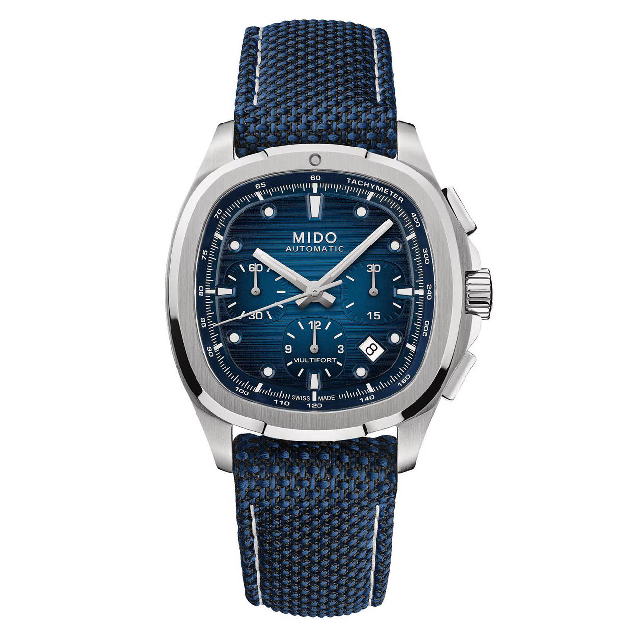 Мужские механические швейцарские часы Mido Multifort TV Chronograph M049.527.11.041.00, механический механизм с высокой точностью. Сапфировое стеклоСапфировое стеклоПрочный и надёжный материал из кристалла сапфира синтетического происхождения, характеризующийся особой твёрдостью и устойчивостью к царапинам и повреждениям. устойчивое к появлению царапин, обладающее высокой прозрачностью. Корпус часов изготовлен из нержавеющей стали.  В механизм внедрена пружина баланса Nivachron™Nivachron™Специально разработанный инновационный сплав Nivachron™ повышает устойчивость часов к воздействию магнитных полей.. Стрелки с люминесцентным покрытиемЛюминесцентное покрытиеПозволяет считывать показания времени в темноте. Производители наносят на стрелки, часовые индексы, безель или поверхность циферблата светонакопительный состав, дающий холодное свечение.. Окошко даты в положении между 4 и 6 часами. Класс водозащиты: 100 метров, позволит плавать, нырять и заниматься другими водными видами спорта. Стальной браслет на раскладной застёжкеРаскладная застёжкаТакой тип застёжки используется только на браслетах из металла. Она никогда не раскрывается полностью, происходит разделение на 2 и более частей. Раскладывающая застёжка снизит вероятность потери часов к минимуму..Часы с функциями хронографаХронографФункция позволяет измерять отрезки времени с особой точностью: часы, минуты, секунды. Верным признаком хронографа является наличие на циферблате 3 дополнительных окошек-счётчиков. и тахиметраТахиметрРазмеченная шкала, располагается на ободке или безеле часов. Тахиметр позволяет рассчитать скорость на определённом участке пути, расстояние измеряется в километрах или милях.. Поставляются с дополнительным ремешком, что обеспечивает еще большую универсальность и комфорт.