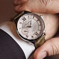 Мужские механические часы с ручным подзаводом — это аксессуар от легендарного бренда «МОЛНИЯ», созданный на Челябинском часовом заводе. Корпус диаметром 41 мм и толщиной 12 мм выполнен из нержавеющей стали 316L с зеркальной полировкой. БезельБезельВнешний ободок, закрепляющий стекло. В спортивных часах так называется поворотное кольцо с делениями на циферблате, выполняет роль таймера – замеряет отрезки времени на шкале. Неподвижный безель – элемент декора. Однонаправленно вращающийся безель на дайверских часах позволяет фиксировать моменты погружения и выныривания на поверхность. также выполнен из стали с зеркальной отделкой. Циферблат бежевый цвета оформлен римскими цифрами и стальными индексами. Малая секундная стрелка вынесена на позицию 9 часов. Циферблат защищён сапфировым стекломСапфировое стеклоПрочный и надёжный материал из кристалла сапфира синтетического происхождения, характеризующийся особой твёрдостью и устойчивостью к царапинам и повреждениям. толщиной 2,5 мм. Механизм — мануфактурный калибр 3603, собранный вручную, с запасом хода до 40 часов. Прозрачная задняя крышка позволяет наблюдать за работой механизма. Часы оснащены коричневым кожаным ремешком шириной 20 мм с раскладной застёжкойРаскладная застёжкаТакой тип застёжки используется только на браслетах из металла. Она никогда не раскрывается полностью, происходит разделение на 2 и более частей. Раскладывающая застёжка снизит вероятность потери часов к минимуму. и системой быстрой замены. Водонепроницаемость 100 м позволяет использовать часы для плавания и повседневного ношения. Идеальный выбор для тех, кто ценит российское качество и традиции.