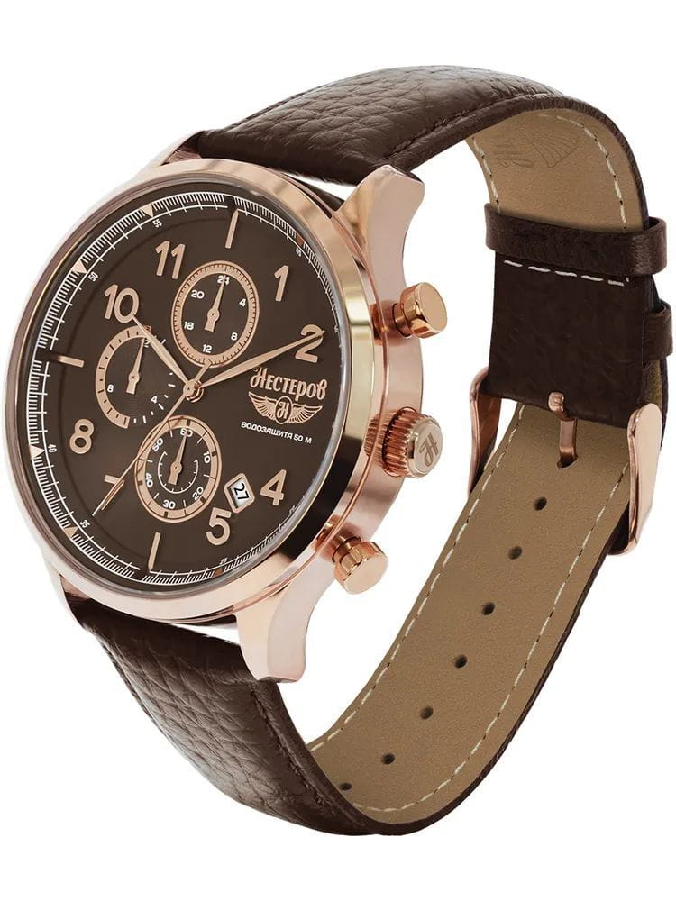 Модель Нестеров H059552-15BR — это мужские часы, сочетающие в себе классический стиль и функциональность.  Корпус диаметром 44 мм выполнен из нержавеющей стали с золотистым PVD-покрытиемPVDУльтратонкое покрытие наносится в технике вакуумного напыления, сочетает в себе нитрид титана особой прочности со слоем золота или оксида хрома. Несёт в себе декоративную или защитную функцию., подчёркивая прочность и элегантность конструкции. Циферблат с метками и стрелками, обеспечивает отличную читаемость.