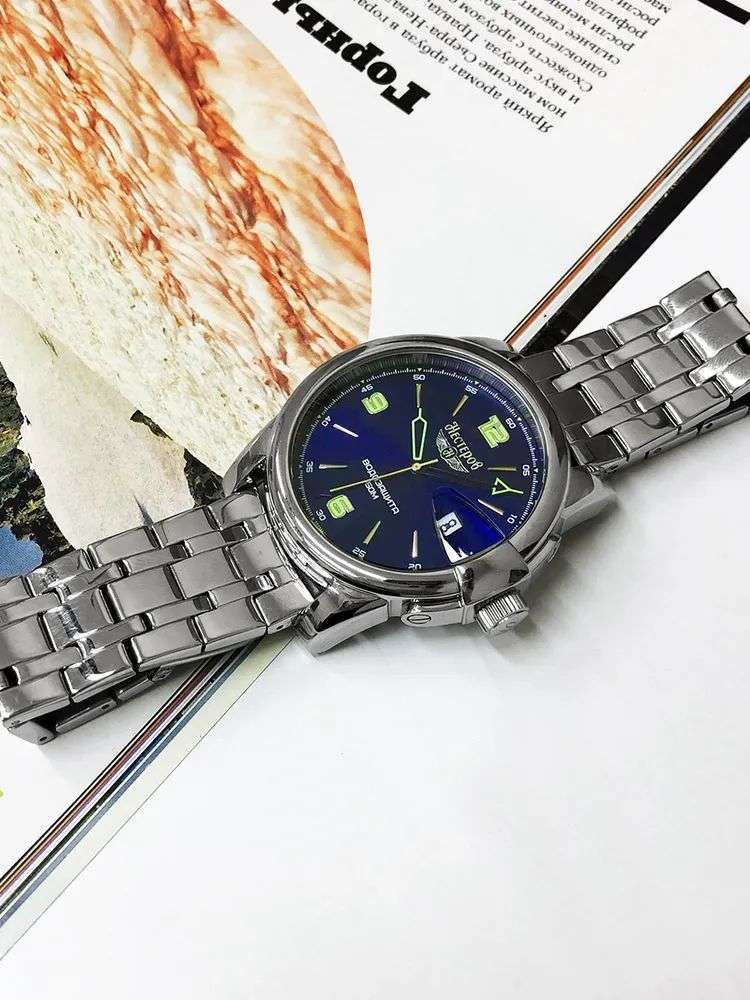 Часы оснащены японским кварцевым механизмом, обеспечивающим точный ход.  Циферблат защищён минеральным стекломМинеральное стеклоМинеральное стекло представляет собой искусственно выращенный минерал кварца. Такое стекло отличается особой устойчивостью к повреждениям и царапинам. Уступает по некоторым качествам сапфировому стеклу., устойчивым к царапинам.  Установлена классическая застёжка-пряжка, обеспечивая надёжную фиксацию на запястье.  Модель обладает водонепроницаемостью до 50 метров, что делает её подходящей для повседневного использования.