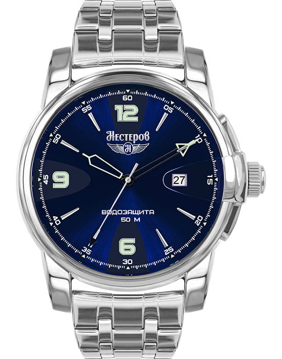 Модель Нестеров H0984B02-75B — это элегантные мужские часы, сочетающие в себе классический дизайн и надёжность.  Корпус диаметром 45 мм выполнен из нержавеющей стали, подчёркивая прочность и изысканность конструкции.  Синий циферблат с арабскими цифрами и стрелками обеспечивает отличную читаемость в любых условиях.