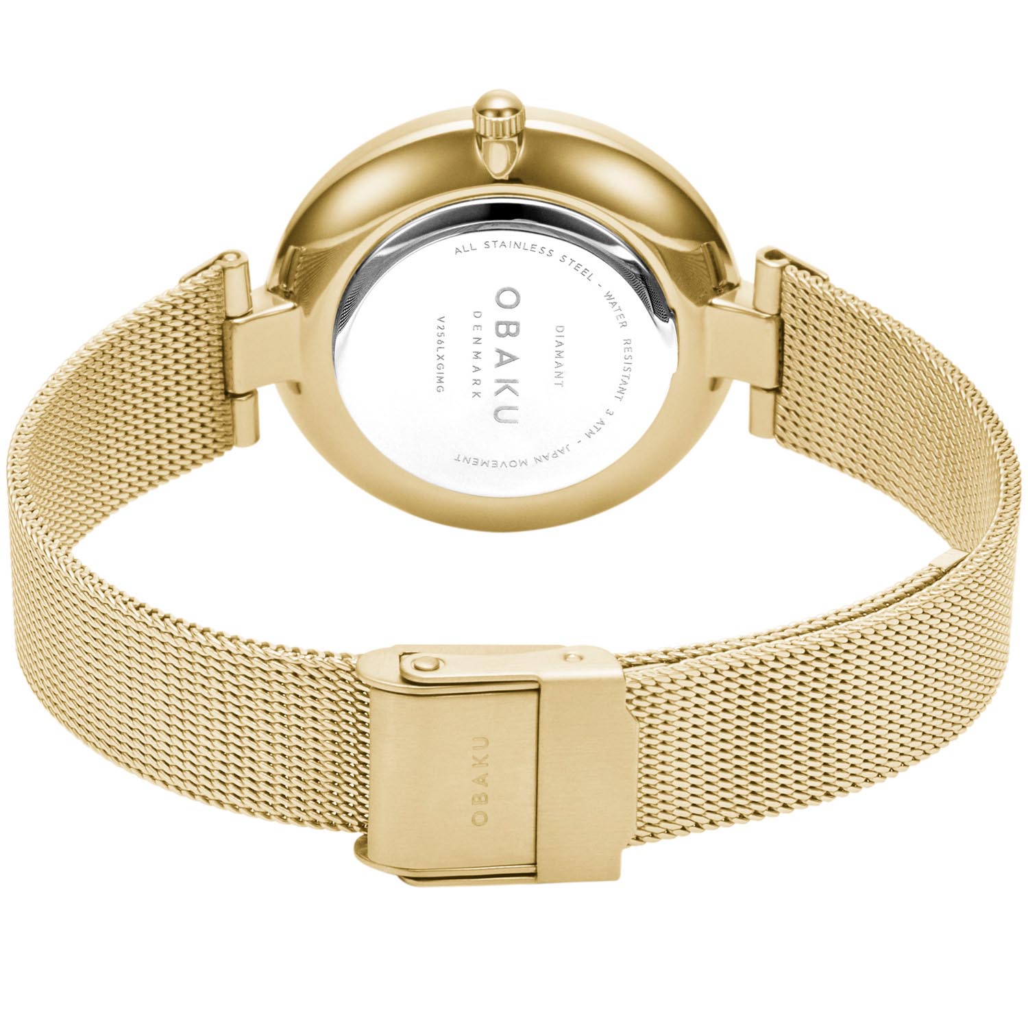 Женские наручные кварцевые часы Obaku Diamant V256LXGIMG, кварцевый механизм с высокой точностью. Класс водозащиты: 30 метров, позволит защитить корпус от случайных брызг или капель дождя. Корпус часов изготовлен из стали, золотистого цвета.