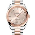 Omega Seamaster Aqua Terra выполнены в симметричном корпусе из нержавеющей стали и 18K Sedna™ золота с завинчивающейся задней крышкой, украшенной волновым узором. Циферблат дополнен окошком даты на 6 часах. Стрелки и метки оснащены люминесцентным покрытиемЛюминесцентное покрытиеПозволяет считывать показания времени в темноте. Производители наносят на стрелки, часовые индексы, безель или поверхность циферблата светонакопительный состав, дающий холодное свечение. Super-LumiNova для лучшей читаемости в темноте. Калибр Omega 8800 сертифицирован как Master Chronometer — гарантия высочайшей точности и устойчивости к магнитным полям. Запас хода составляет 55 часов. Защиту циферблата обеспечивает сапфировое стеклоСапфировое стеклоПрочный и надёжный материал из кристалла сапфира синтетического происхождения, характеризующийся особой твёрдостью и устойчивостью к царапинам и повреждениям. с антибликовым покрытиемАнтибликовое покрытиеСлой оксида металла в 0,13-0,3 микрон, благодаря которому стекло часов не бликует и не отражает свет. Антибликовое покрытие уменьшает отражение света в 10 раз, обеспечивая отличную читаемость показателей циферблата.. Водозащита позволяет использовать часы в воде без риска повреждения. Часы установлены на комбинированный браслет из 18K Sedna™ золота и нержавеющей стали с застёжка «бабочка» с кнопкамиЗастёжка "бабочка"Такой вид застёжки дополняется предохранителями, помогающими избежать случайного раскрытия браслета. Обладают изящным исполнением. . Это сочетание премиального качества, технологичности и классического дизайна.