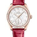 Omega Seamaster Aqua Terra выполнены в симметричном корпусе из 18K Sedna™ золота с волновым узором на задней крышке. Безель украшен бриллиантами, а циферблат дополнен окошком даты на 6 часах и малым секундным циферблатом с кольцом из 18К Sedna™ золота, инкрустированным бриллиантами. Стрелки и метки оснащены люминесцентным покрытиемЛюминесцентное покрытиеПозволяет считывать показания времени в темноте. Производители наносят на стрелки, часовые индексы, безель или поверхность циферблата светонакопительный состав, дающий холодное свечение. для лучшей читаемости в темноте. Индексы выполнены в виде бриллиантов, установленных в держатели из 18К Sedna™ золота. Калибр Omega 8803 сертифицирован как Master Chronometer — гарантия высочайшей точности и устойчивости к магнитным полям. Запас хода составляет 55 часов. Защиту циферблата обеспечивает сапфировое стеклоСапфировое стеклоПрочный и надёжный материал из кристалла сапфира синтетического происхождения, характеризующийся особой твёрдостью и устойчивостью к царапинам и повреждениям. с антибликовым покрытиемАнтибликовое покрытиеСлой оксида металла в 0,13-0,3 микрон, благодаря которому стекло часов не бликует и не отражает свет. Антибликовое покрытие уменьшает отражение света в 10 раз, обеспечивая отличную читаемость показателей циферблата. с обеих сторон. Водозащита позволяет использовать часы в воде без риска повреждения. Диаметр корпуса — 38 мм, между "ушками" — 19 мм, толщина — 12.7 мм. Часы установлены на кожаный ремешок. Вес модели — около 111 грамм. Это сочетание премиального качества, технологичности и классического дизайна.