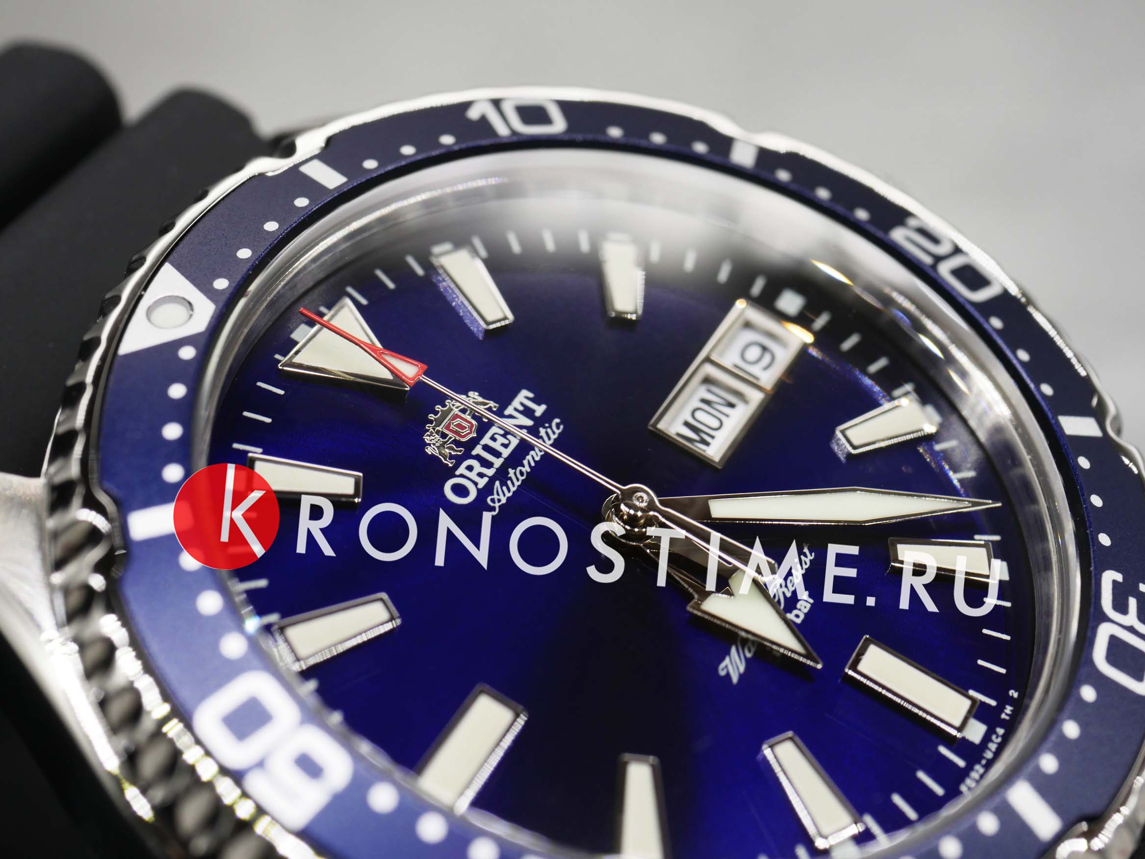 Часы Orient Kamasu RA-AA0006L — это гармоничное сочетание современного стиля и надежной функциональности. Корпус из нержавеющей стали диаметром 41,8 мм защищён Сапфировым стекломСапфировое стеклоПрочный и надёжный материал из кристалла сапфира синтетического происхождения, характеризующийся особой твёрдостью и устойчивостью к царапинам и повреждениям., обеспечивающим долговечность и защиту от царапин. Эффектный синий циферблат украшен метками и стрелками с Люминесцентным покрытиемЛюминесцентное покрытиеПозволяет считывать показания времени в темноте. Производители наносят на стрелки, часовые индексы, безель или поверхность циферблата светонакопительный состав, дающий холодное свечение., что позволяет легко считывать время даже в условиях низкой освещенности. Однонаправленный БезельБезельВнешний ободок, закрепляющий стекло. В спортивных часах так называется поворотное кольцо с делениями на циферблате, выполняет роль таймера – замеряет отрезки времени на шкале. Неподвижный безель – элемент декора. Однонаправленно вращающийся безель на дайверских часах позволяет фиксировать моменты погружения и выныривания на поверхность. с алюминиевой вставкой подчеркивает спортивный характер часов и добавляет практичности. Автоматический механизм Orient Calibre F6922 с функцией ручного завода и остановки секундной стрелки гарантирует точность и автономность до 40 часов. Чёрный силиконовый ремешок с классической пряжкой обеспечивает комфорт и устойчивость к влаге. Водонепроницаемость до 200 метров делает эту модель идеальной для плавания и дайвинга, а окошко даты и дня недели, расположенное на отметке «3 часа», добавляет удобства в повседневной жизни. Часы Orient Kamasu RA-AA0006L19B — это выбор для тех, кто ценит стиль, надежность и функциональность.