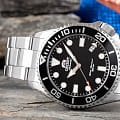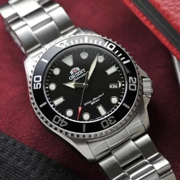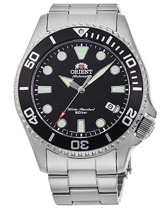 Мужские механические часы с автоподзаводом Orient Automatic RA-AC0K01B. Сапфировое стеклоСапфировое стеклоПрочный и надёжный материал из кристалла сапфира синтетического происхождения, характеризующийся особой твёрдостью и устойчивостью к царапинам и повреждениям. устойчивое к появлению царапин, обладающее высокой прозрачностью. Корпус из нержавеющей стали. Вращающийся безельБезельВнешний ободок, закрепляющий стекло. В спортивных часах так называется поворотное кольцо с делениями на циферблате, выполняет роль таймера – замеряет отрезки времени на шкале. Неподвижный безель – элемент декора. Однонаправленно вращающийся безель на дайверских часах позволяет фиксировать моменты погружения и выныривания на поверхность. из нержавеющей стали с PVDPVDУльтратонкое покрытие наносится в технике вакуумного напыления, сочетает в себе нитрид титана особой прочности со слоем золота или оксида хрома. Несёт в себе декоративную или защитную функцию. покрытием. Окошко даты в положении 4 часов. Стрелки и метки с люминесцентным покрытиемЛюминесцентное покрытиеПозволяет считывать показания времени в темноте. Производители наносят на стрелки, часовые индексы, безель или поверхность циферблата светонакопительный состав, дающий холодное свечение.. Класс водозащиты: 200 метров, позволит плавать, нырять и заниматься другими водными видами спорта. Стальной браслет на раскладной застёжкеРаскладная застёжкаТакой тип застёжки используется только на браслетах из металла. Она никогда не раскрывается полностью, происходит разделение на 2 и более частей. Раскладывающая застёжка снизит вероятность потери часов к минимуму..