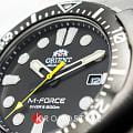 Мужские механические часы с автоподзаводом Orient M-Force RA-AC0L01B представляют собой идеальное сочетание стиля, функциональности и надежности. Эти часы созданы специально для любителей активного отдыха и водных видов спорта. Корпус и браслет часов изготовлены из высококачественной нержавеющей стали, которая обладает повышенной стойкостью к механическим повреждениям и коррозии. Циферблат защищен сапфировым стекломСапфировое стеклоПрочный и надёжный материал из кристалла сапфира синтетического происхождения, характеризующийся особой твёрдостью и устойчивостью к царапинам и повреждениям., известным своей исключительной прочностью и высокой прозрачностью. Это стекло имеет специальное антибликовое покрытие, благодаря чему циферблат остается четким и легко читаемым даже при ярком солнечном свете. БезельБезельВнешний ободок, закрепляющий стекло. В спортивных часах так называется поворотное кольцо с делениями на циферблате, выполняет роль таймера – замеряет отрезки времени на шкале. Неподвижный безель – элемент декора. Однонаправленно вращающийся безель на дайверских часах позволяет фиксировать моменты погружения и выныривания на поверхность. часов выполнен с использованием IP-покрытияIP-покрытиеМетод ионного напыления. Демонстрирует повышенную устойчивость к истиранию, окислению и химическим веществам. Под воздействием высокого давления и температуры около 1500°C молекулы металла надёжно соединяются с частицами корпуса часов., что значительно увеличивает его износостойкость и защищает от царапин. Он плавно вращается в одном направлении, обеспечивая точность измерения времени погружения.На циферблате расположено окошко дня недели и даты, находящееся в положении 3 часа. Этот элемент придает часам дополнительную функциональность и удобство в использовании. Механизм часов оснащен 22 камнями, что обеспечивает высокую точность работы и долговечность устройства. Частота колебаний механизма составляет 21600 полуколебаний в час, а запас хода достигает 40 часов, что позволяет часам работать без необходимости ежедневного завода. Для обеспечения отличной видимости в темное время суток стрелки и метки покрыты люминесцентным покрытиемЛюминесцентное покрытиеПозволяет считывать показания времени в темноте. Производители наносят на стрелки, часовые индексы, безель или поверхность циферблата светонакопительный состав, дающий холодное свечение., которое светится в темноте, облегчая считывание показаний. Класс водонепроницаемости этих часов составляет 200 метров, что делает их подходящими для плавания, дайвинга и других водных видов спорта. Браслет часов изготовлен из нержавеющей стали и оснащен раскладной застежкойРаскладная застёжкаТакой тип застёжки используется только на браслетах из металла. Она никогда не раскрывается полностью, происходит разделение на 2 и более частей. Раскладывающая застёжка снизит вероятность потери часов к минимуму., которая обеспечивает надежную фиксацию на запястье и удобство использования. Эта модель часов станет надежным спутником в любых приключениях и подчеркнет ваш стиль и любовь к активным видам отдыха.