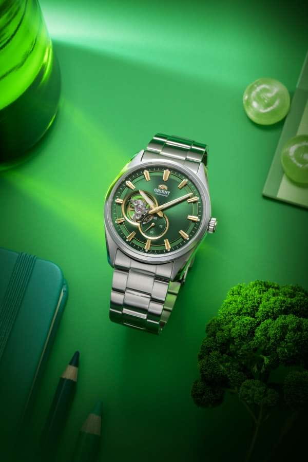Часы Orient Automatic RA-AR0008E10B от японского часового бренда изготавливаются со строгим соблюдением всех норм качества, минималистичные модели в классическом стиле никогда не утратят своей актуальности. Эти часы оснащены механизмом с автоподзаводом на базе калибра F6S22. Запас хода не менее 40-ка часов. Количество камней - 24. Функция стоп-секунда (остановка секундной стрелки для установки точного времени). Сапфировое стеклоСапфировое стеклоПрочный и надёжный материал из кристалла сапфира синтетического происхождения, характеризующийся особой твёрдостью и устойчивостью к царапинам и повреждениям., устойчивое к появлению царапин, обладающее высокой прозрачностью надежно защищает зеленый циферблат с частично открытым механизмом от царапин и повреждений. Стрелки с люминесцентным покрытиемЛюминесцентное покрытиеПозволяет считывать показания времени в темноте. Производители наносят на стрелки, часовые индексы, безель или поверхность циферблата светонакопительный состав, дающий холодное свечение. позволяют легко определить время даже в темноте. Дизайнеры акцентируют внимание на лаконичном оформлении, делая осуществимой возможность сочетать аксессуар с любой одеждой. Стальной браслет на раскладной застёжкеРаскладная застёжкаТакой тип застёжки используется только на браслетах из металла. Она никогда не раскрывается полностью, происходит разделение на 2 и более частей. Раскладывающая застёжка снизит вероятность потери часов к минимуму. удобно фиксируется на запястье. Класс водозащиты: 50 метров, позволит защитить корпус от случайных брызг или капель дождя.