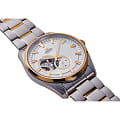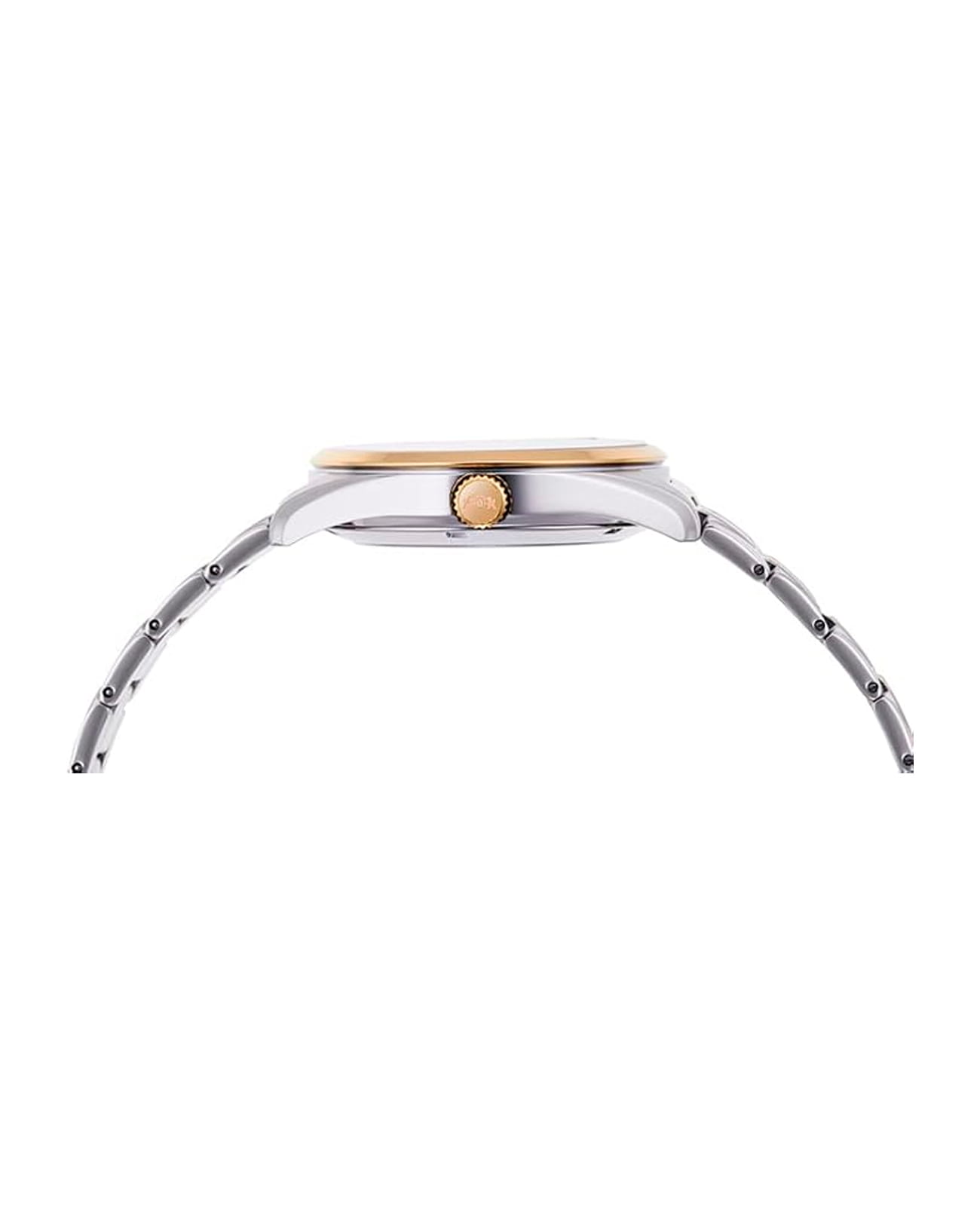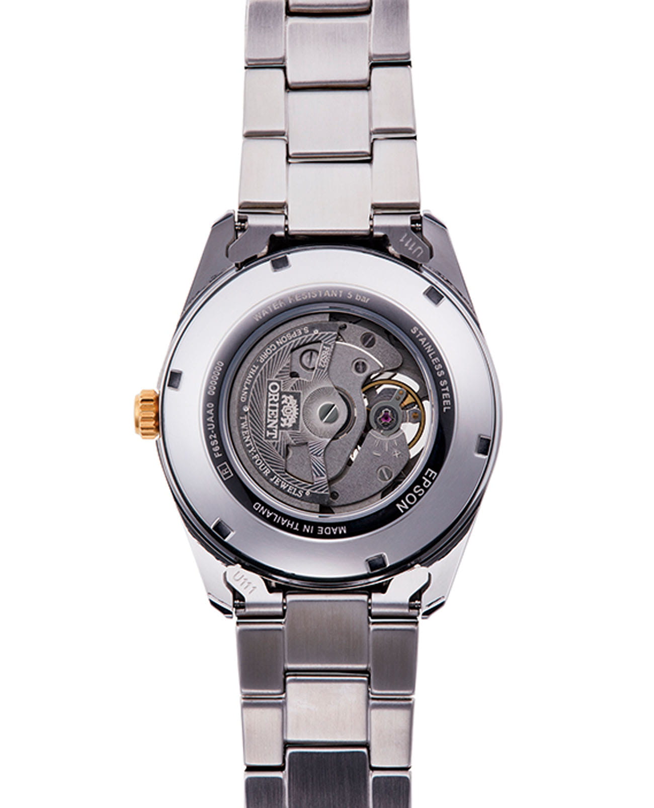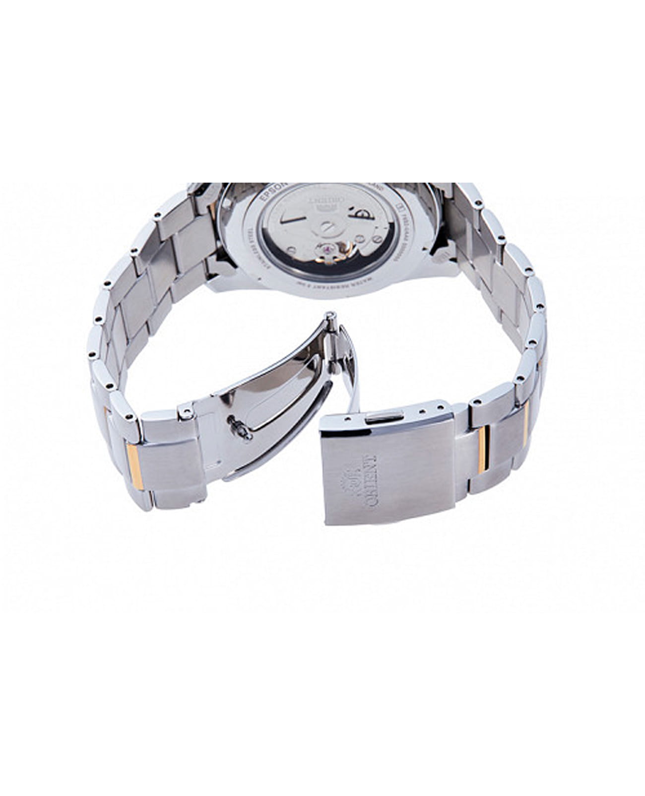 Часы Orient RN-AR0006S представляют собой стильную модель из коллекции Contemporary, сочетающую в себе классический дизайн и современные технологии. Это мужские механические часы с автоподзаводом, оснащённые калибром F6S22, который обеспечивает точность хода в пределах +25/-15 секунд в сутки и запас хода до 40 часов. Часы также поддерживают функцию ручного подзавода и остановки секундной стрелки (hacking stop), что позволяет точно синхронизировать время. Корпус часов выполнен из нержавеющей стали и имеет диаметр 40,8 мм при толщине 10,9 мм. Водонепроницаемость модели составляет 50 метров, что защищает часы от случайных брызг или капель дождя, но не предназначено для плавания или дайвинга. Часы оснащены сапфировым стекломСапфировое стеклоПрочный и надёжный материал из кристалла сапфира синтетического происхождения, характеризующийся особой твёрдостью и устойчивостью к царапинам и повреждениям., устойчивым к царапинам, и винтовой задней крышкой с прозрачным окном, позволяющим наблюдать за работой механизма. Циферблат выполнен в белом цвете с полускелетонным дизайном, который открывает вид на механизм в области 9 часов. На циферблате расположены светящиеся метки и стрелки с люминесцентным покрытиемЛюминесцентное покрытиеПозволяет считывать показания времени в темноте. Производители наносят на стрелки, часовые индексы, безель или поверхность циферблата светонакопительный состав, дающий холодное свечение., обеспечивающие хорошую видимость в темноте. Также предусмотрено окно малой секундной стрелки на позиции 6 часов, что добавляет часам уникальный и стильный вид. Браслет часов изготовлен из нержавеющей стали с частичным PVD-покрытиемPVDУльтратонкое покрытие наносится в технике вакуумного напыления, сочетает в себе нитрид титана особой прочности со слоем золота или оксида хрома. Несёт в себе декоративную или защитную функцию., что придаёт ему дополнительную износостойкость и элегантный внешний вид. Застёжка выполнена вна раскладной застёжкеРаскладная застёжкаТакой тип застёжки используется только на браслетах из металла. Она никогда не раскрывается полностью, происходит разделение на 2 и более частей. Раскладывающая застёжка снизит вероятность потери часов к минимуму., что обеспечивает надёжную фиксацию на запястье. Часы оснащены фиксированным безелемБезельВнешний ободок, закрепляющий стекло. В спортивных часах так называется поворотное кольцо с делениями на циферблате, выполняет роль таймера – замеряет отрезки времени на шкале. Неподвижный безель – элемент декора. Однонаправленно вращающийся безель на дайверских часах позволяет фиксировать моменты погружения и выныривания на поверхность. с PVD-покрытиемPVDУльтратонкое покрытие наносится в технике вакуумного напыления, сочетает в себе нитрид титана особой прочности со слоем золота или оксида хрома. Несёт в себе декоративную или защитную функцию., который подчёркивает их ретро-стиль и добавляет модели современный акцент .