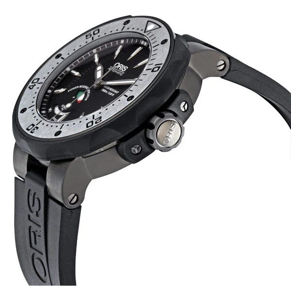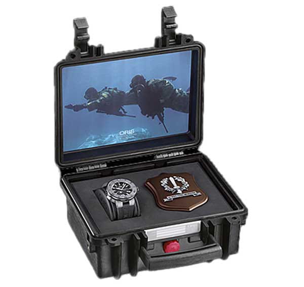 Oris 01 667 7645 7284-Set — швейцарские механические часы, воплощающие гармонию стиля и функциональности. Лимитированная серия 2000 шт. Корпус диаметром 49 мм выполнен из легкого и прочного титана, что делает их удобными для повседневного ношения. Механизм часов обеспечивает высокую точность хода и надежность работы. Сапфировое стеклоСапфировое стеклоПрочный и надёжный материал из кристалла сапфира синтетического происхождения, характеризующийся особой твёрдостью и устойчивостью к царапинам и повреждениям. с антибликовым покрытием защищает циферблат от царапин и обеспечивает отличную читаемость при любом освещении. Каучуковый ремешок и застежка с удлинением для дайверовУдлинение для дайверовЗастёжка с удлинением для дайверов представляет собой безопасное крепление, которое позволяет надевать часы поверх гидрокостюма. Гибкая застёжка удлиняется на 1-2 миллиметра. идеально дополняют дизайн часов, обеспечивая комфортное ношение. Стрелки и метки на циферблате имеют люминесцентное покрытиеЛюминесцентное покрытиеПозволяет считывать показания времени в темноте. Производители наносят на стрелки, часовые индексы, безель или поверхность циферблата светонакопительный состав, дающий холодное свечение. позволяющее легко определять время даже в темноте. Часы обладают впечатляющей водонепроницаемостью до 100 бар (1000 метров), что делает их идеальными для плавания, ныряния и погружений с аквалангом. Механизм Oris 667 на базе ETA 2897 — это автоподзавод с двунаправленным вращающимся красным ротором, запас хода составляет 42 часа. Завинчивающаяся задняя крышка с гравировкой. Водостойкая подарочная шкатулка с эмблемой полка Col Moschin.