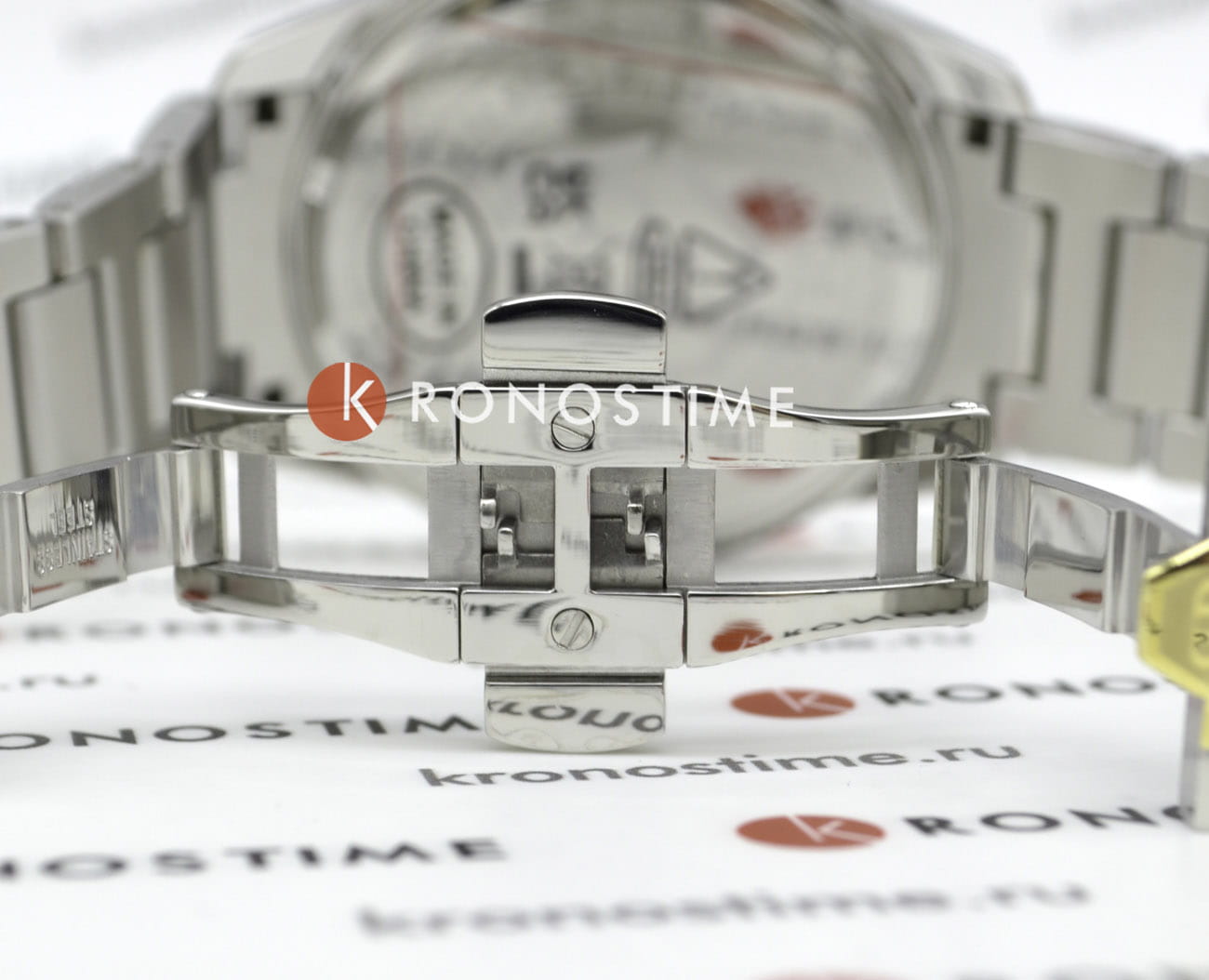 БезельБезельВнешний ободок, закрепляющий стекло. В спортивных часах так называется поворотное кольцо с делениями на циферблате, выполняет роль таймера – замеряет отрезки времени на шкале. Неподвижный безель – элемент декора. Однонаправленно вращающийся безель на дайверских часах позволяет фиксировать моменты погружения и выныривания на поверхность. с IP-покрытиемIP-покрытиеМетод ионного напыления. Демонстрирует повышенную устойчивость к истиранию, окислению и химическим веществам. Под воздействием высокого давления и температуры около 1500°C молекулы металла надёжно соединяются с частицами корпуса часов. добавляет часам дополнительную прочность и элегантность. Стальной браслет на застёжке-бабочке с кнопкамиЗастёжка "бабочка"Такой вид застёжки дополняется предохранителями, помогающими избежать случайного раскрытия браслета. Обладают изящным исполнением. не только выглядит стильно, но и обеспечивает удобство при ношении. Частичное IP-покрытиеIP-покрытиеМетод ионного напыления. Демонстрирует повышенную устойчивость к истиранию, окислению и химическим веществам. Под воздействием высокого давления и температуры около 1500°C молекулы металла надёжно соединяются с частицами корпуса часов. браслета подчеркивает его утонченность и делает часы еще более привлекательными.