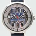 Женские кварцевые часы Pierre Lannier 100J626 — элегантный дань французской архитектуре. Корпус из нержавеющей стали, диаметром 35 мм. Циферблат скелетонизированный — серый с изображением собора Нотр-Дам. Стрелки с люминесцентным покрытиемЛюминесцентное покрытиеПозволяет считывать показания времени в темноте. Производители наносят на стрелки, часовые индексы, безель или поверхность циферблата светонакопительный состав, дающий холодное свечение.. Стекло — минеральноеМинеральное стеклоМинеральное стекло представляет собой искусственно выращенный минерал кварца. Такое стекло отличается особой устойчивостью к повреждениям и царапинам. Уступает по некоторым качествам сапфировому стеклу., устойчивое к мелким повреждениям. Ремешок — синий кожаный на стандартной застёжке. Водонепроницаемость 50 м. Идеальный выбор для тех, кто ценит французский дизайн и культурное наследие.