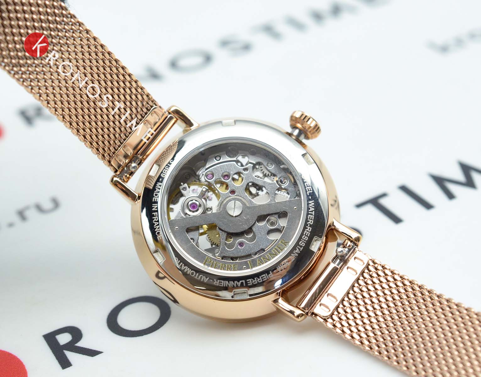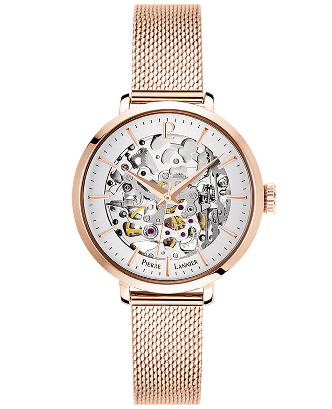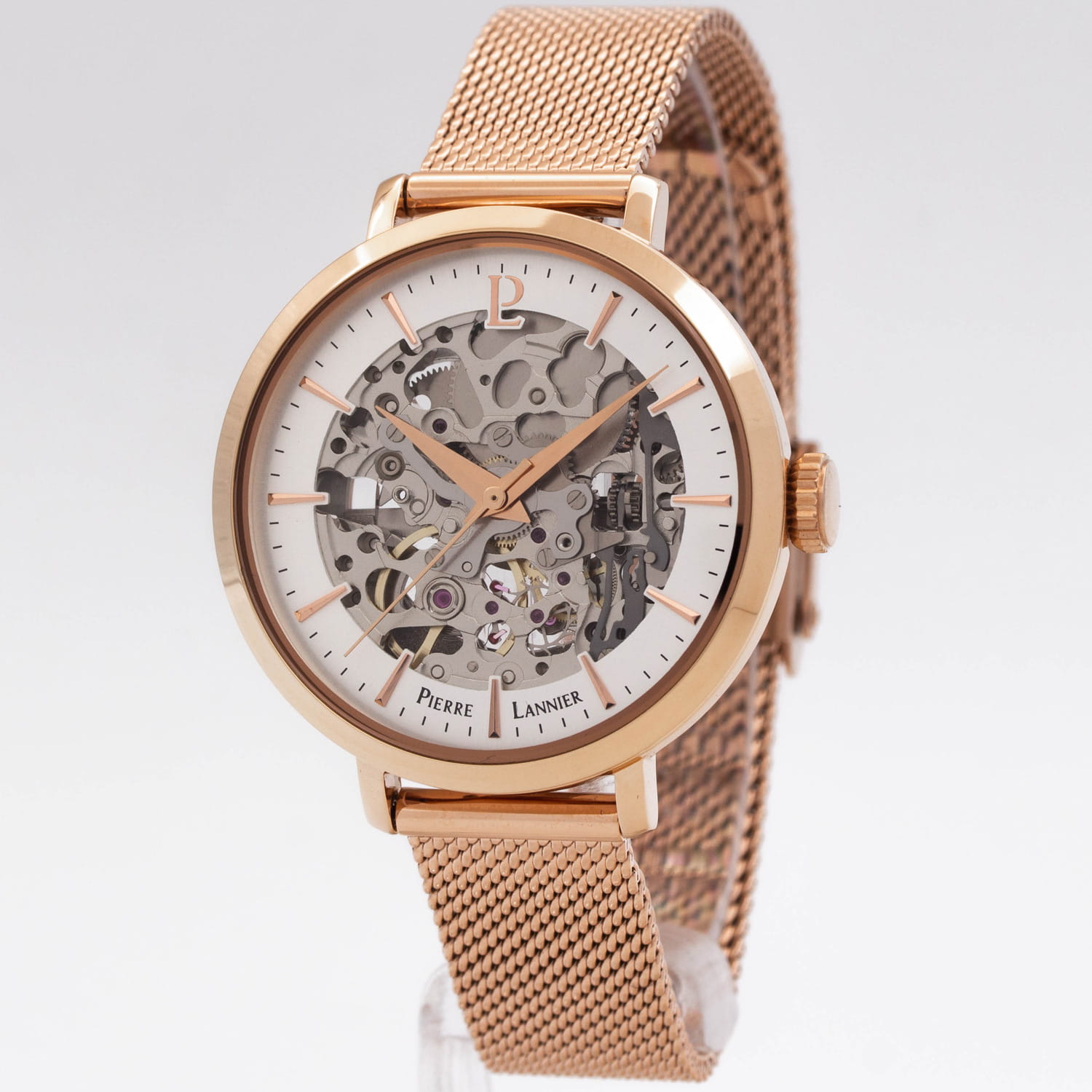 Женские механические часы с автоподзаводом Pierre Lannier Automatic 309D968. Минеральное стеклоМинеральное стеклоМинеральное стекло представляет собой искусственно выращенный минерал кварца. Такое стекло отличается особой устойчивостью к повреждениям и царапинам. Уступает по некоторым качествам сапфировому стеклу. устойчивое к мелким механическим повреждениям. Центральные часовая, минутная и секундная стрелки. Корпус выполнен из нержавеющей стали с PVD-покрытиемPVDУльтратонкое покрытие наносится в технике вакуумного напыления, сочетает в себе нитрид титана особой прочности со слоем золота или оксида хрома. Несёт в себе декоративную или защитную функцию.. Водостойкость: 30 метров, позволит защитить корпус от случайных брызг или капель дождя. Стальной браслет миланского плетения с раскладной застёжкойРаскладная застёжкаТакой тип застёжки используется только на браслетах из металла. Она никогда не раскрывается полностью, происходит разделение на 2 и более частей. Раскладывающая застёжка снизит вероятность потери часов к минимуму..