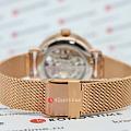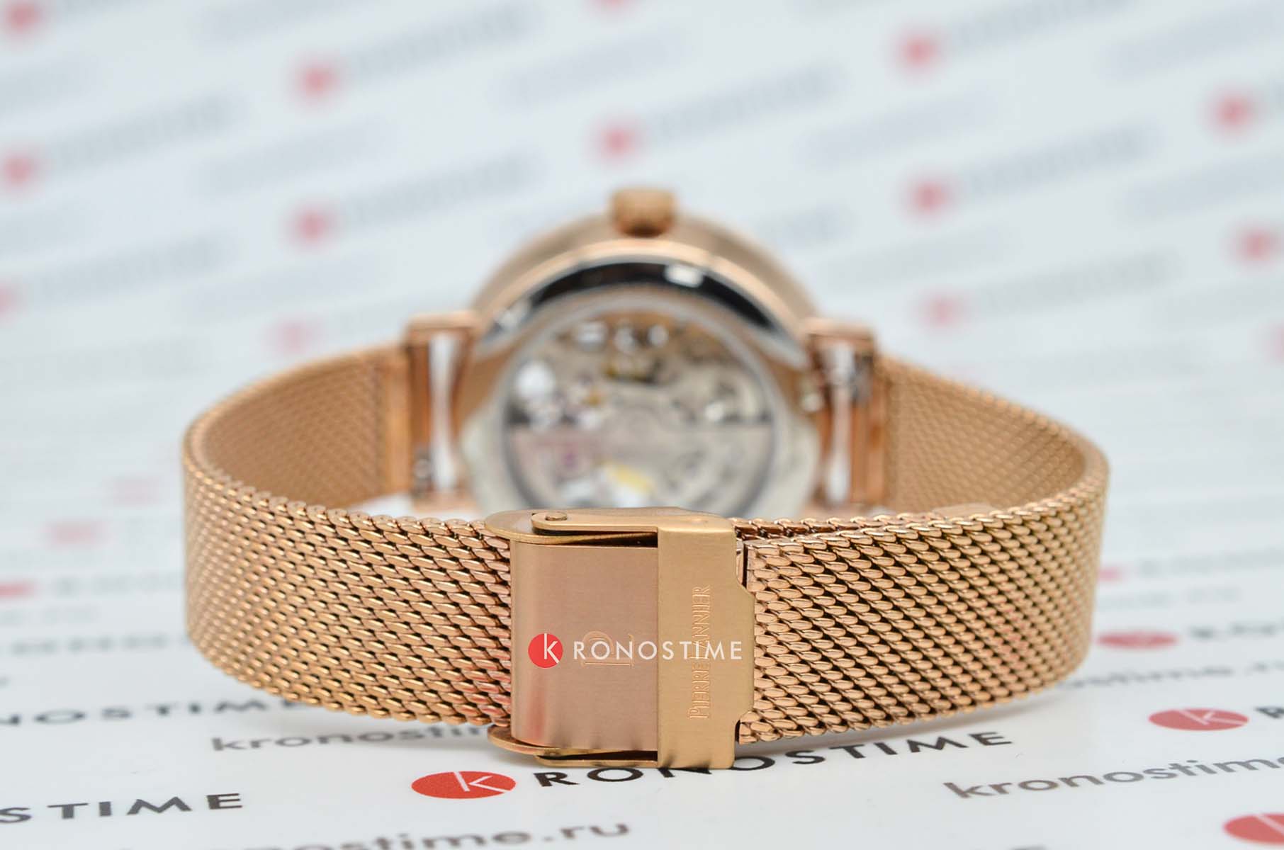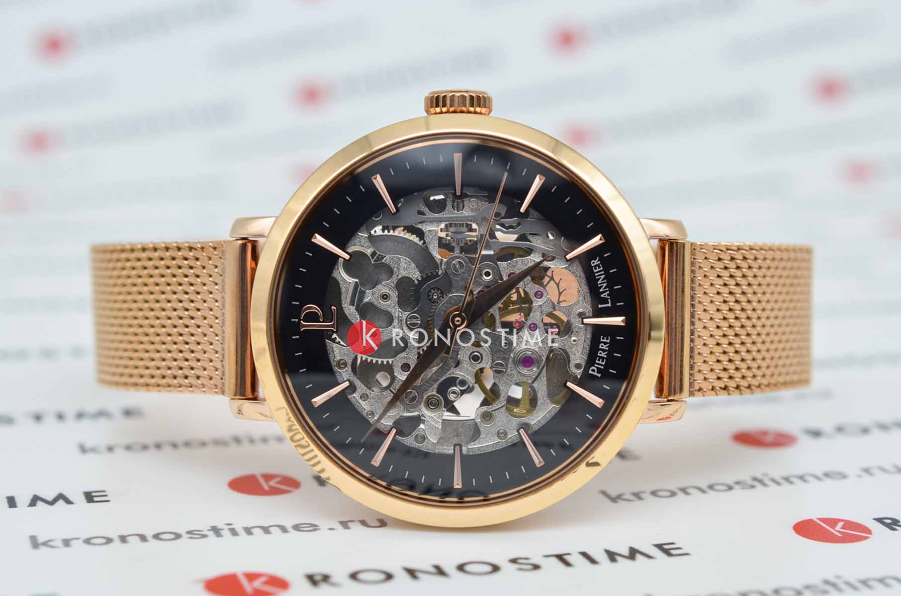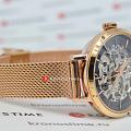 Женские механические часы с автоподзаводом Pierre Lannier Automatic 313B938. Минеральное стеклоМинеральное стеклоМинеральное стекло представляет собой искусственно выращенный минерал кварца. Такое стекло отличается особой устойчивостью к повреждениям и царапинам. Уступает по некоторым качествам сапфировому стеклу. устойчивое к мелким механическим повреждениям. Скелетонизированный циферблат с золотистыми стрелками и часовыми метками. Центральные часовая, минутная и секундная стрелки. Круглый корпус выполнен из полированной нержавеющей стали с PVD-покрытиемPVDУльтратонкое покрытие наносится в технике вакуумного напыления, сочетает в себе нитрид титана особой прочности со слоем золота или оксида хрома. Несёт в себе декоративную или защитную функцию. цвета розового золота. Диаметр корпуса составляет 35 мм, толщина 12 мм. Стальной браслет с покрытием выполнен шириной 14 мм в технике миланского плетения, раскладная застёжкаРаскладная застёжкаТакой тип застёжки используется только на браслетах из металла. Она никогда не раскрывается полностью, происходит разделение на 2 и более частей. Раскладывающая застёжка снизит вероятность потери часов к минимуму.. Неподвижный безельБезельВнешний ободок, закрепляющий стекло. В спортивных часах так называется поворотное кольцо с делениями на циферблате, выполняет роль таймера – замеряет отрезки времени на шкале. Неподвижный безель – элемент декора. Однонаправленно вращающийся безель на дайверских часах позволяет фиксировать моменты погружения и выныривания на поверхность. из нержавеющей стали с PVD-покрытиемPVDУльтратонкое покрытие наносится в технике вакуумного напыления, сочетает в себе нитрид титана особой прочности со слоем золота или оксида хрома. Несёт в себе декоративную или защитную функцию. цвета розового золота. Водостойкость: 30 метров, позволит защитить корпус от случайных брызг или капель дождя.