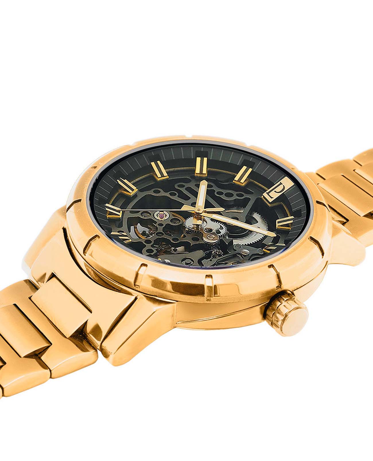 Мужские механические часы с автоподзаводом Pierre Lannier Automatic 325C032. Минеральное стеклоМинеральное стеклоМинеральное стекло представляет собой искусственно выращенный минерал кварца. Такое стекло отличается особой устойчивостью к повреждениям и царапинам. Уступает по некоторым качествам сапфировому стеклу. устойчивое к мелким механическим повреждениям. Корпус и браслет выполнены из нержавеющей стали с IP-покрытиемIP-покрытиеМетод ионного напыления. Демонстрирует повышенную устойчивость к истиранию, окислению и химическим веществам. Под воздействием высокого давления и температуры около 1500°C молекулы металла надёжно соединяются с частицами корпуса часов.. Центральные часовая, минутная и секундная стрелки. Стрелки с люминесцентным покрытиемЛюминесцентное покрытиеПозволяет считывать показания времени в темноте. Производители наносят на стрелки, часовые индексы, безель или поверхность циферблата светонакопительный состав, дающий холодное свечение.. Черный скелетонизированный циферблат. Прозрачная задняя крышка. Водостойкость: 50 метров, позволит защитить корпус от случайных брызг или капель дождя. Стальной браслет на раскладной застёжкеРаскладная застёжкаТакой тип застёжки используется только на браслетах из металла. Она никогда не раскрывается полностью, происходит разделение на 2 и более частей. Раскладывающая застёжка снизит вероятность потери часов к минимуму..